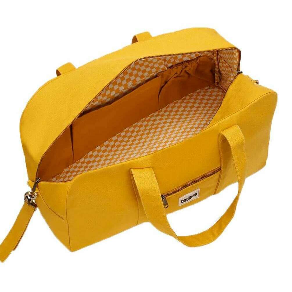 Designer Hindbag has brought you this unisex 100% organic cotton (500g/m2) bag using saffron yellow tones. It measures 28cm(height) x 48cm(width) x 19cm(depth). All the bags come complete with hindbag packaging. The Hindbag Basile Baby Bag - Saffron Yellow is a large capacity organic cotton changing bag designed to accompany parents on their everyday journeys and longer outings. With enough room to hold all your baby s essentials, this bag features five pockets for organizing items. The velcro straps can be attached to a stroller for hands-free walking or pushing the stroller, while the adjustable handle gives the option to carry by hand or over the shoulder. The colourful interior lining adds a unique artisanal touch to this baby diaper bag.