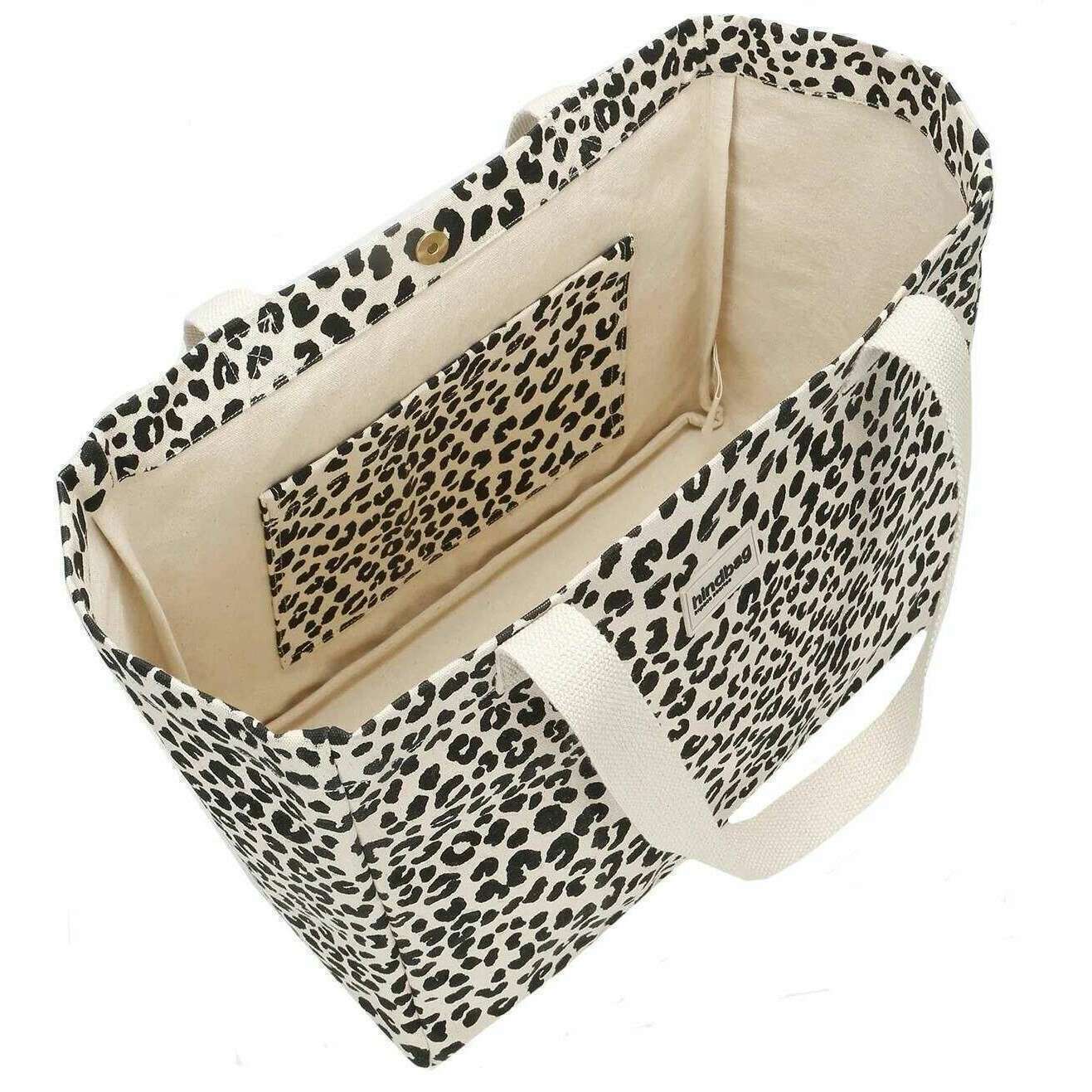 Using white 100% organic cotton, this claude beach tote bag by Hindbag is perfect for men or women and a must have. It measures 33cm(height) x 40cm(width) x 23cm(depth). All the bags come complete with hindbag packaging. The Hindbag Claude Beach Tote Bag - Leopard Off White is a versatile and stylish bag crafted from eco-friendly material. This Claude Tote offers a generous 33-liter capacity, making it suitable for various occasions such as shopping, beach outings, or daily commutes. The magnetic snap button ensures the bag remains closed, keeping your belongings secure while allowing easy access.