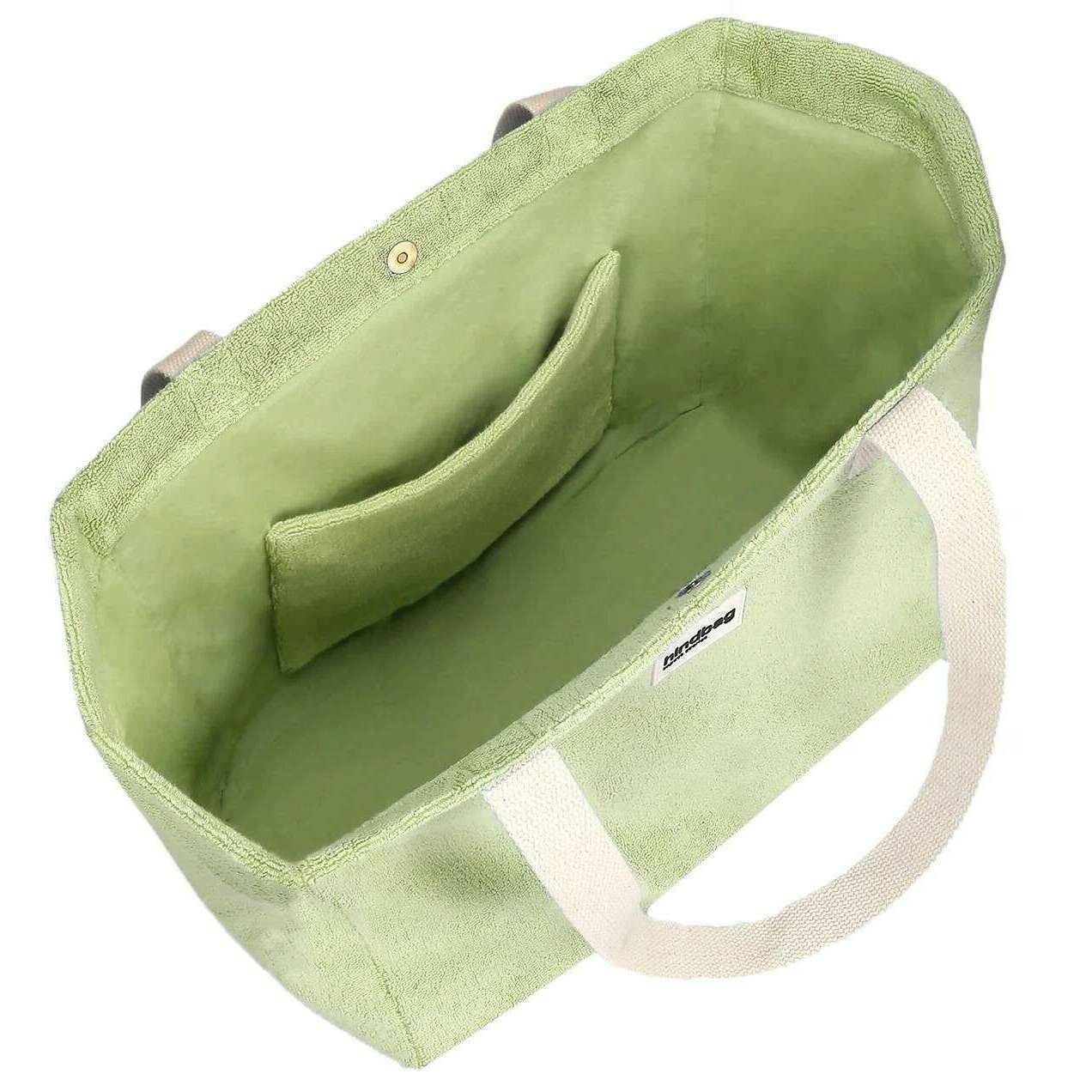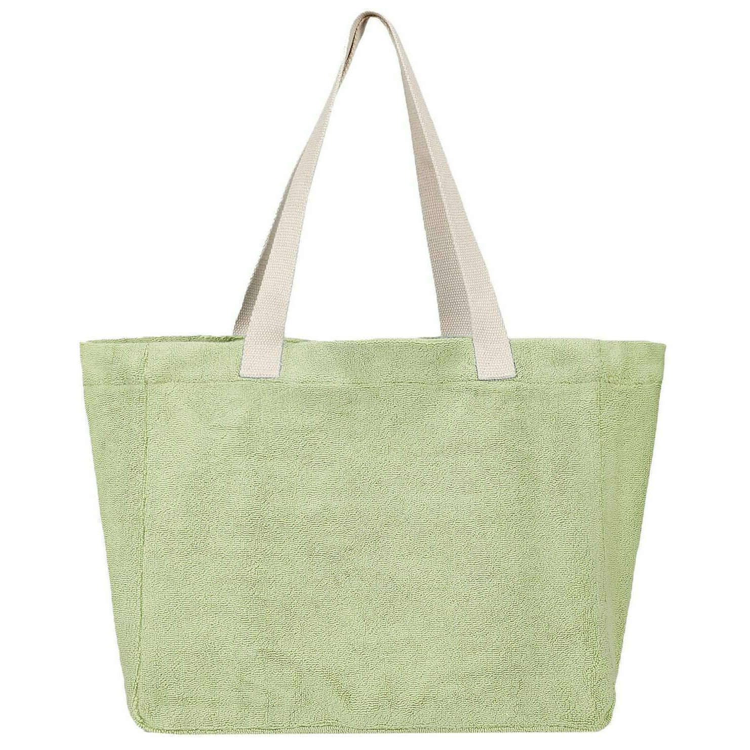 Perfect for men or women is this Hindbag terry green claude beach tote bag, it is also made from 100% organic cotton. It measures 33cm(height) x 40cm(width) x 23cm(depth). All the bags come complete with hindbag packaging. The Hindbag Claude Beach Tote Bag - Terry Green is a versatile and stylish bag crafted from eco-friendly material. This Claude Tote offers a generous 33-liter capacity, making it suitable for various occasions such as shopping, beach outings, or daily commutes. The magnetic snap button ensures the bag remains closed, keeping your belongings secure while allowing easy access.