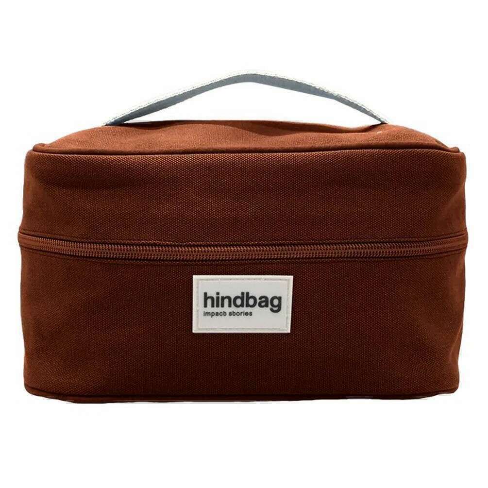 This well made unisex gaspard vanity bag from Hindbag comes in a chocolate brown colour and is manufactured from 100% organic cotton. It measures 13.5cm(height) x 16cm(width) x 25cm(depth). All the bags come complete with hindbag packaging. The Hindbag Gaspard Vanity Bag - Chocolate Brown offers travellers and everyday users alike a convenient and stylish way to keep their toiletries organized and accessible. The interior net is perfect for neatly arranging toiletries, cosmetics, and other personal items. Available in a range of colours, this fashionable accessory represents a harmonious fusion of functionality and aesthetics, catering to those who value both style and practicality in their journey.