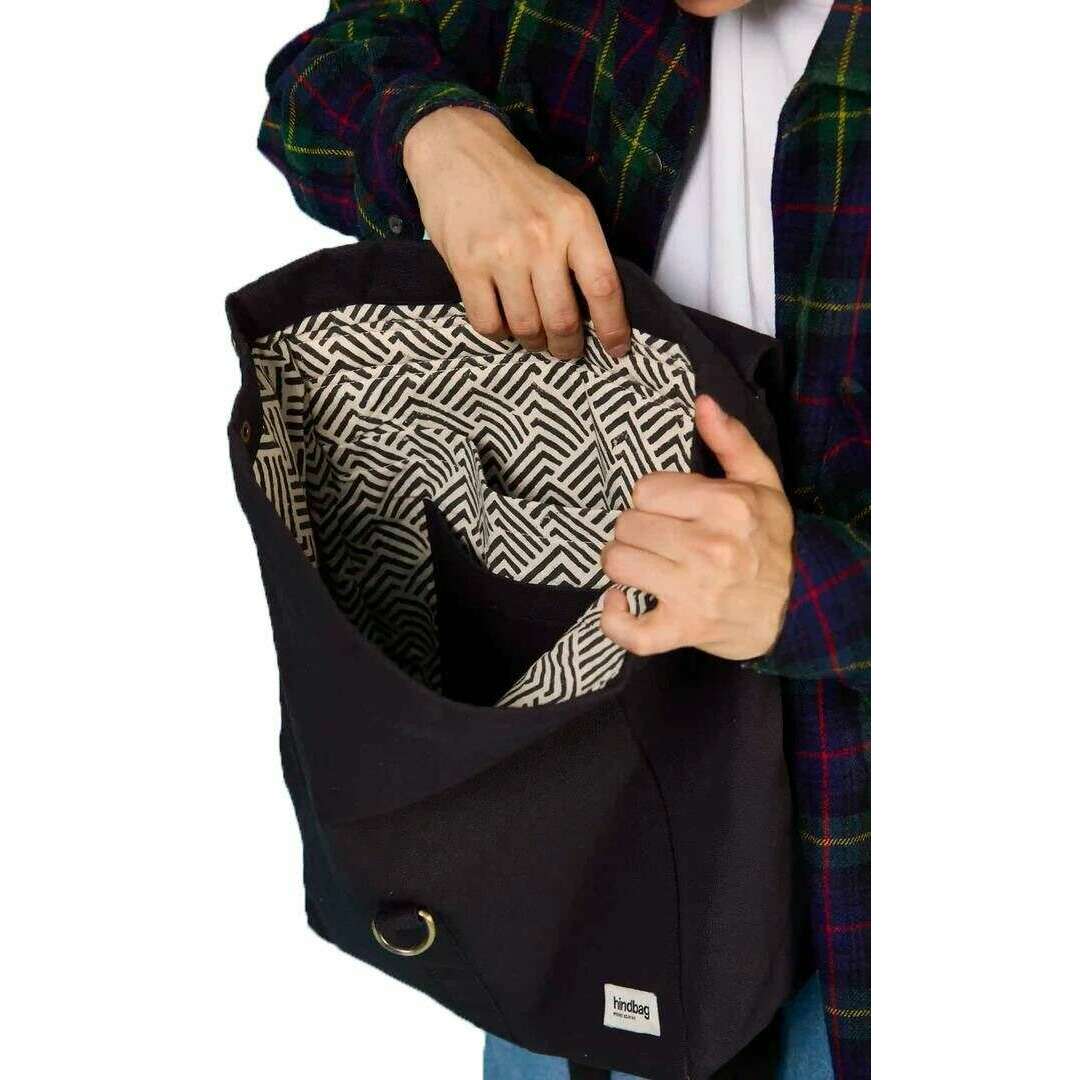 This unisex guillaume flap backpack by the brand Hindbag is made from 100% organic cotton (500g/m2) and is showcased in black. It measures 48cm(height) x 30cm(width) x 15cm(depth). All the bags come complete with hindbag packaging. The Hindbag Guillaume Flap Backpack - Black is a sleek yet practical everyday companion, designed with equal attention to style, durability, and sustainability. Crafted from thick, GOTS-certified organic cotton, this bag features a spacious main compartment that can comfortably house a 15-inch laptop, books, or daily essentials, and a series of smaller interior pockets to keep your belongings neatly organized. The adjustable handles with foam will offer you comfort and robustness, making this backpack versatile enough for both professional and casual settings.