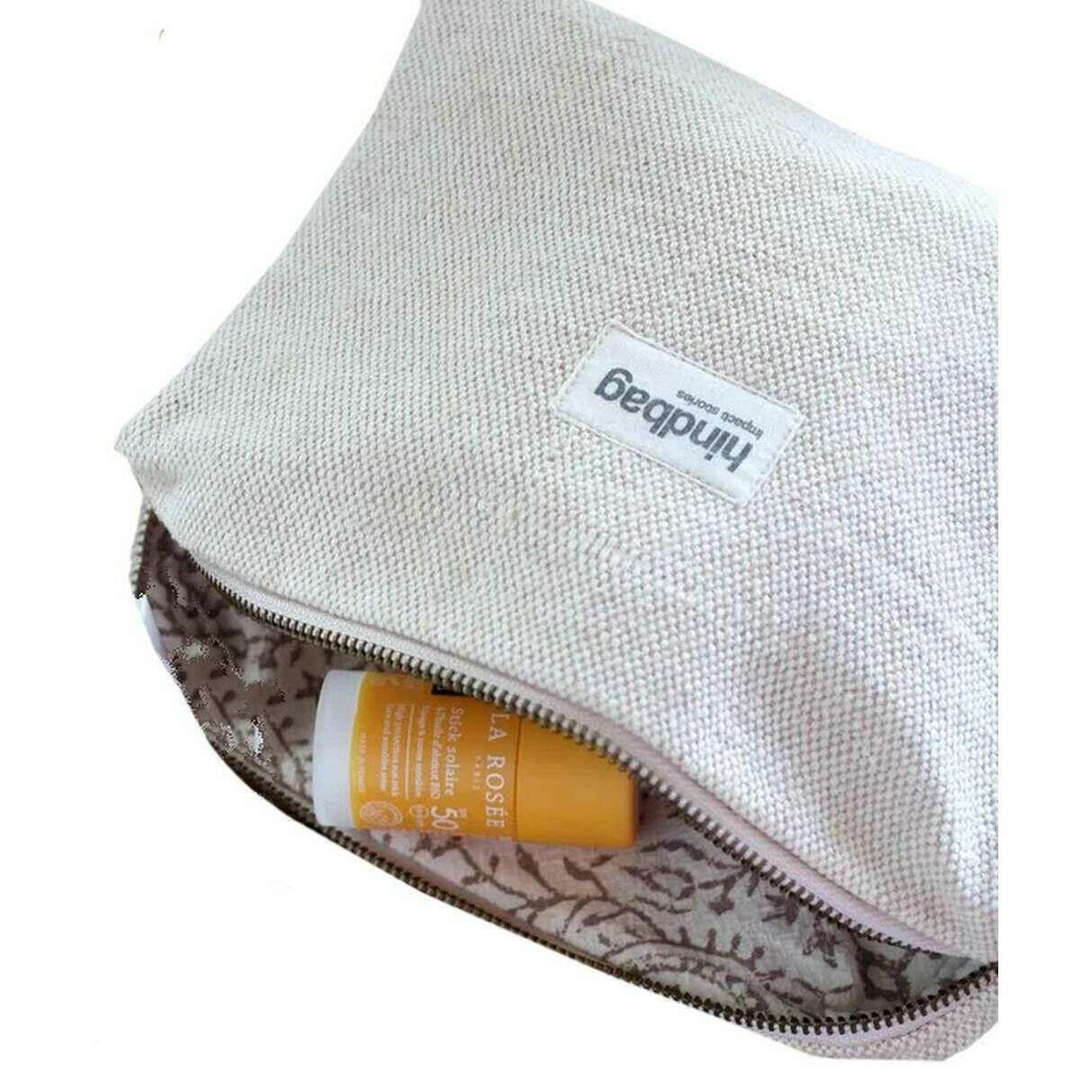 This unisex leon toiletry bag has been made from 100% organic cotton, featured in a cream colour and is from the brand Hindbag. It measures 16cm(height) x 22cm(width) x 8cm(depth). All the bags come complete with hindbag packaging. The Hindbag Leon Toiletry Bag - Jute Cream is a sleek and practical accessory designed for travellers and daily commuters who value both style and functionality. The practical handle ensures easy handling, and the secure zipper closure keeps your essentials safe. Lined with matching organic cotton in a block print pattern, this bag offers ample space for your toiletries without being bulky.