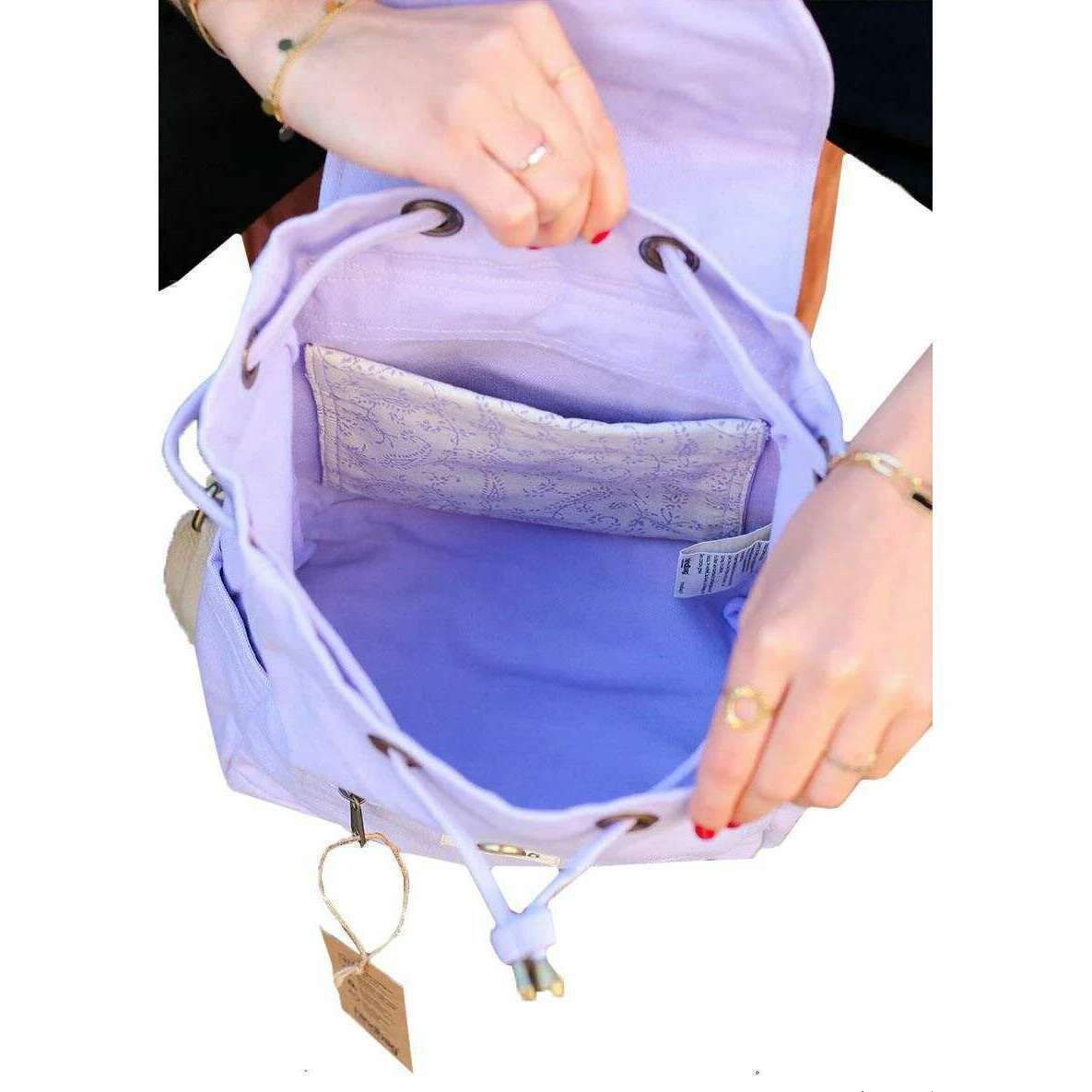 Introducing this unisex mini eliot small backpack by Hindbag, it is manufactured from 100% organic cotton in a lilac colour. It measures 31cm(height) x 24cm(width) x 13cm(depth). All the bags come complete with hindbag packaging. The Hindbag Mini Eliot Small Backpack - Lilac is suitable for young and old alike! Featuring two exterior pockets and one interior pocket, you can slip in what you need while keeping your hands free. The timeless design of this mini backpack blend vintage charm with modern functionality, making them a popular choice for daily use.