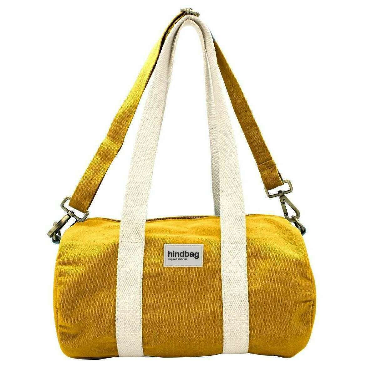 Designer Hindbag has brought you this unisex 100% organic cotton bag using saffron yellow tones. It measures 18cm(height) x 35cm(width) x 18cm(depth). All the bags come complete with hindbag packaging. The Hindbag Mini Simon Small Duffle Bag - Saffron Yellow is a versatile and eco-conscious travel companion designed for those seeking functionality without compromising on style. Featuring an outer zippered pocket and adjustable shoulder strap for comfort, this duffel bag offers ample space for essentials while maintaining a sleek profile, making it ideal for weekend getaways, gym sessions, or daily commutes.