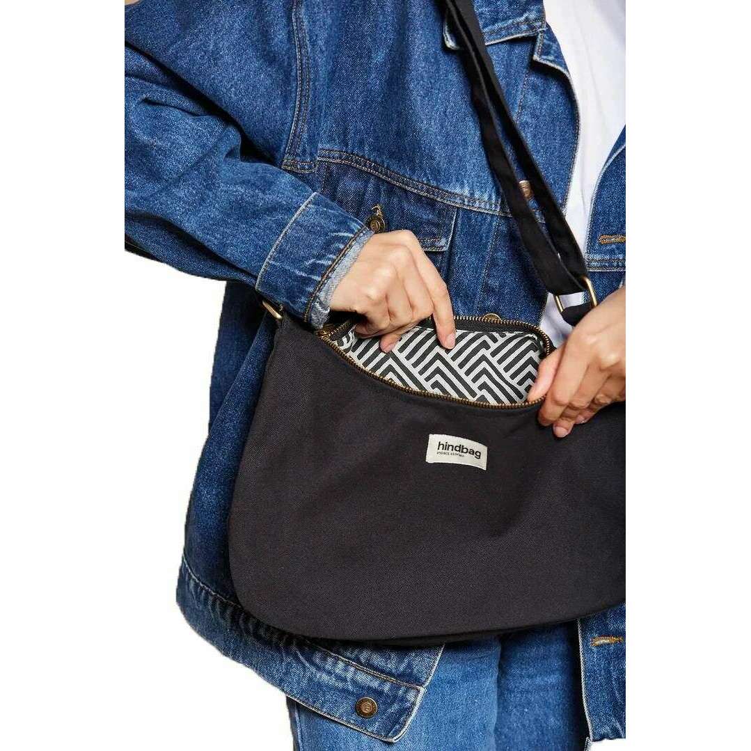 Perfect for men or women is this Hindbag black rosa large shoulder bag, it is also made from 100% organic cotton (500g/m2). It measures 20cm(height) x 34cm(width) x 10cm(depth). All the bags come complete with hindbag packaging. The Hindbag Rosa Large Shoulder Bag - Black is an elegant yet playful accessory designed to carry you from the office to brunch with ease. With its adjustable handle, it can be worn over the shoulder, on the shoulder or on the arm. With an inner lining that adds a touch of elegance, this bag features an outside pocket with zipper to have all your essentials close at hand. Ideal for everyday use, this bag is designed for comfort and usability as much as for style.