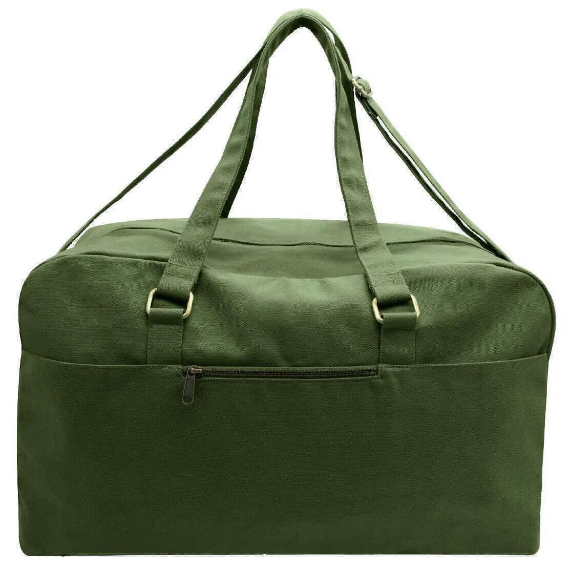 Manufactured from 100% organic cotton is this olive green unisex yves large travel bag by the designer Hindbag. It measures 33cm(height) x 54cm(width) x 24cm(depth). All the bags come complete with hindbag packaging. The Hindbag Yves Large Travel Bag - Olive Green is a spacious and eco-friendly option for travellers. Crafted from thick, GOTS-certified organic cotton, this bag features multiple pockets for organization, a secure zipper closure, and a printed inner lining that adds a touch of elegance. With its handles and large adjustable shoulder strap, this bag can be easily carried by hand or on the shoulder.