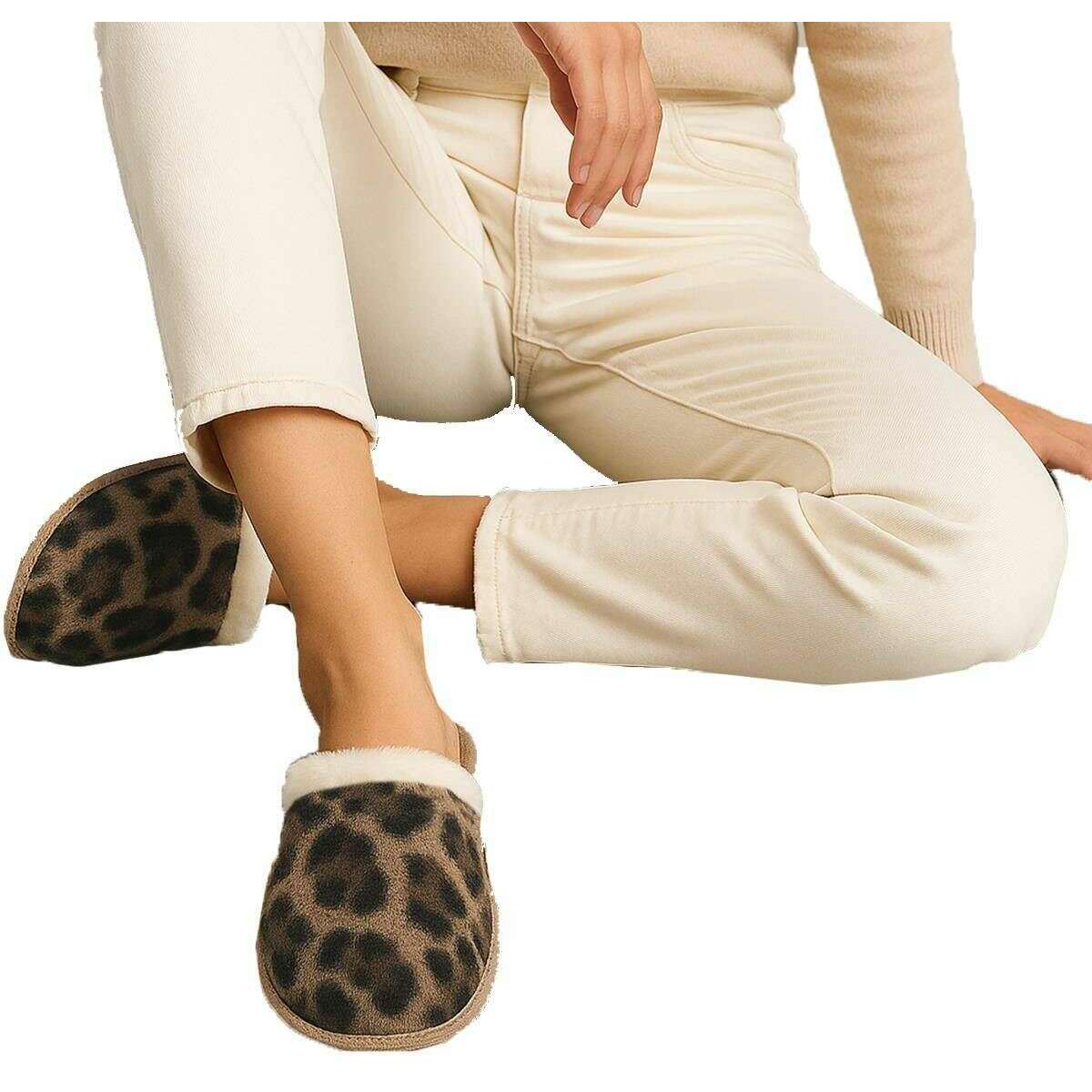 Isotoner Animal Fur Mule Slippers - Brown Leopard