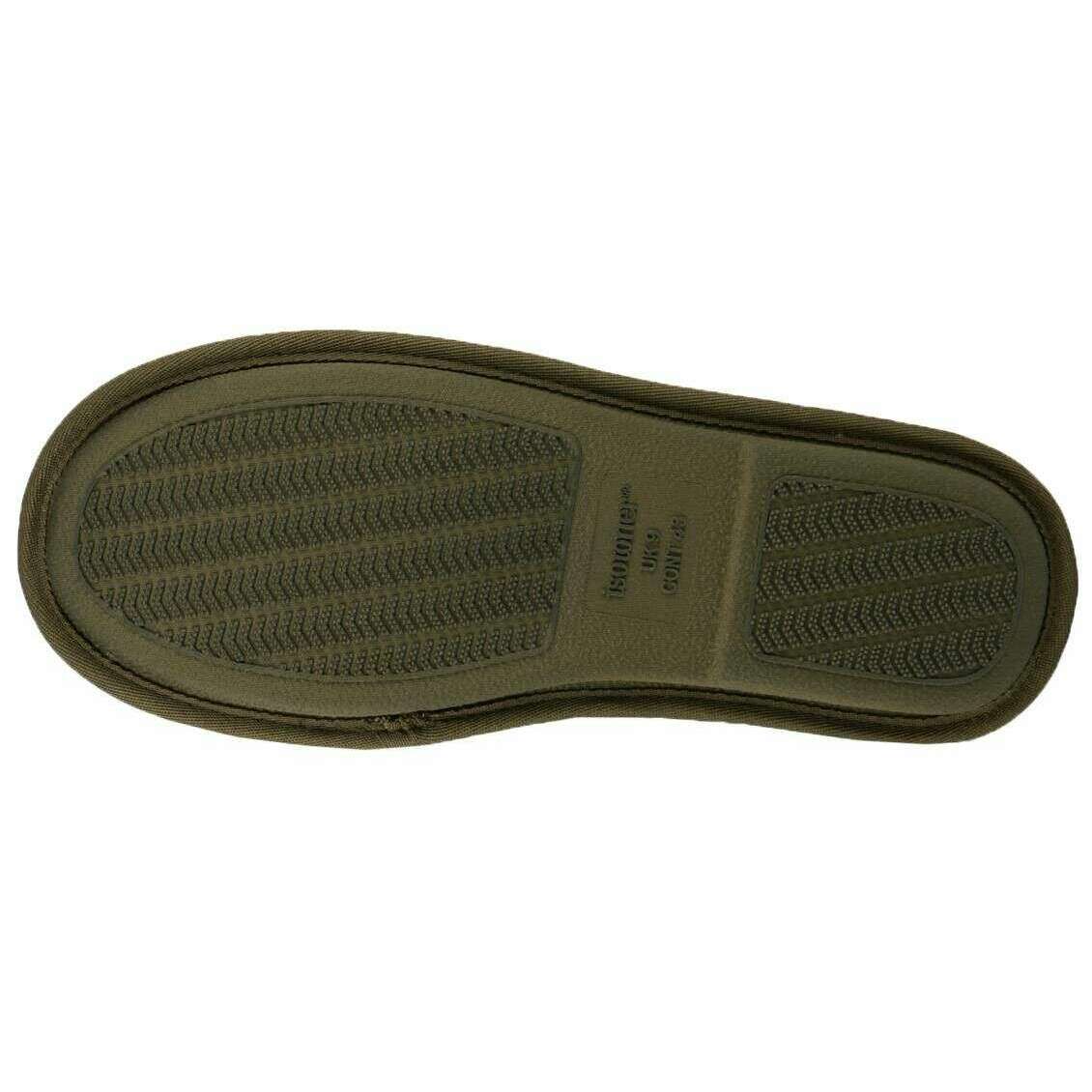 These men's sport quilted mule slippers by the brand Isotoner are made from 100% polyester and are showcased in green. Also the khaki green slippers are designed in a plain pattern, It is recommended to machine wash at 30 degrees to keep these slippers in good condition. All the slippers come complete with isotoner packaging. The Isotoner Sport Quilted Mule Slippers - Khaki Green on trend, are a great pair for any man looking to for comfort, support and warmth. This pair features comfort memory foam and pillow step cushioned technology with a foam layer will feel like you re walking on a cloud with the heel and arch support and durable flat sole. This mule style will keep your feet nice and toasty with the soft materials and coverage of the foot, whilst also being breathable with an open back.