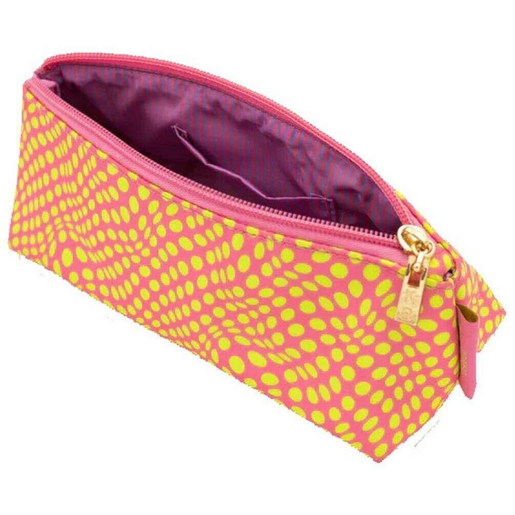 This essentials case for women is fashioned by the brand Kind Bag London in a pink colour and is made from 100% recycled plastic. It measures 24cm(height) x 6.5cm(width) x 6.5cm(depth). All the accessory cases come complete with kind bag packaging. The Kind Bag London Essentials Case - Twisted Polka Dot Pink/Yellow is the perfect addition to your school/work bag. This stationary case is perfect for storing all your stationary belongings and comes with a handy inside pocket for extra storage.