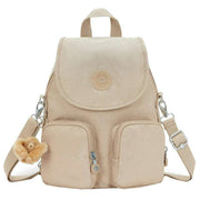 This well made women's firefly up backpack from Kipling comes in a sparkled beige colour and is manufactured from 100% recycled polyester. It measures 31cm(height) x 22cm(width) x 14cm(depth). All the bags come complete with kipling packaging. The Kipling Firefly Up Backpack - Sparkled Beige is designed to help you stay organized. With a main compartment with zipped pockets, this bag also features two zipped front pockets and two rear zipped pockets for complete storage and more security. Built with a top carry handle and adjustable backpack straps you have varying carrying options. Travel or commute, this bag is the perfect choice!