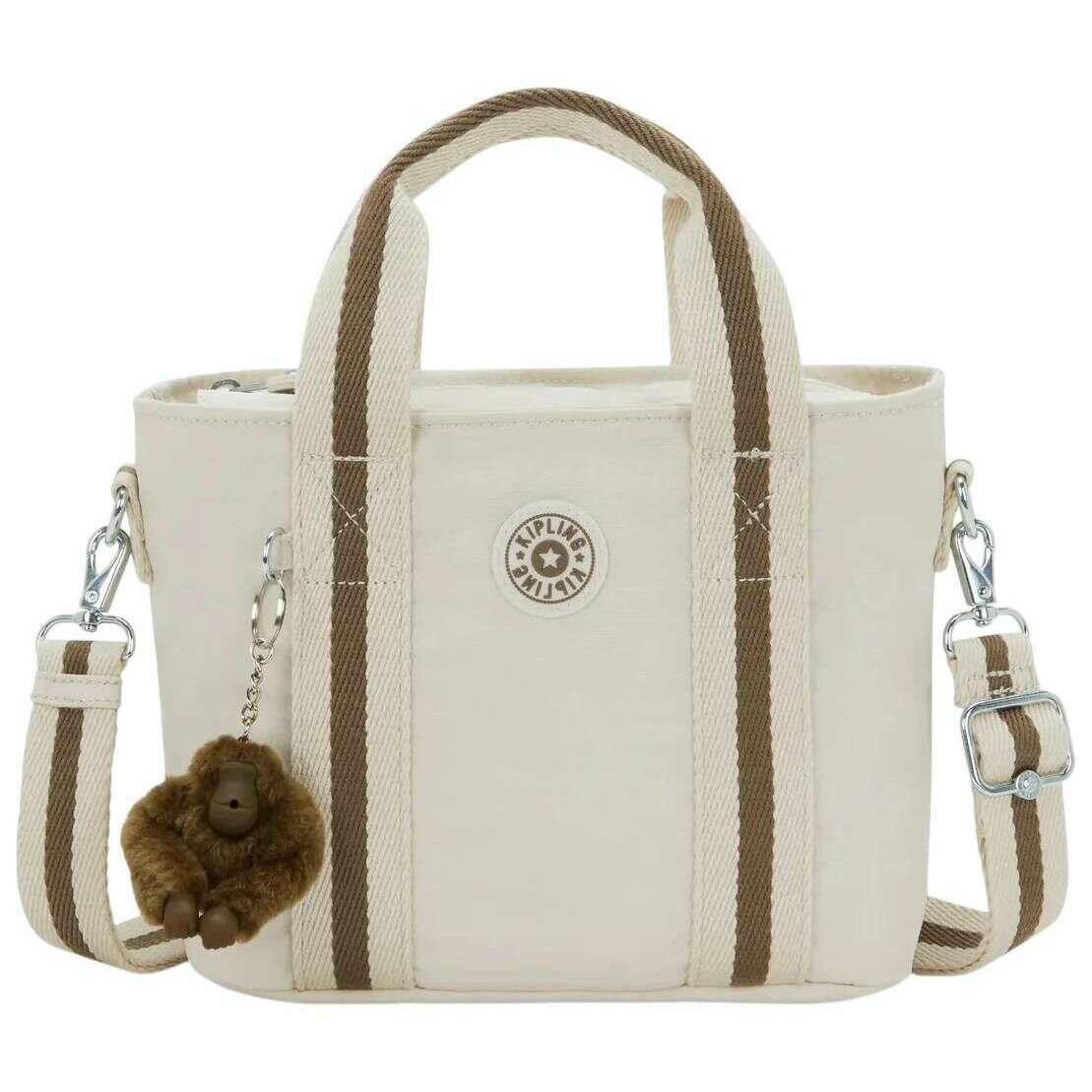 This minta medium tote bag for women is fashioned by the brand Kipling in a cream colour and is made from 60% polyamide and 40% recycled polyamide. It measures 19cm(height) x 29cm(width) x 13.5cm(depth). All the bags come complete with kipling packaging. The Kipling Minta Medium Tote Bag - Soft Sand Cream bridges the gap between a compact tote and a convenient shoulder bag, making it an ideal choice for daily errands and everyday outings. Its thoughtfully designed shape keeps belongings secure while providing just enough room for essentials whether it s a wallet, phone, keys, or a favourite paperback for moments on the go. With a single 5?litre zipped main compartment, the Minta keeps items safely contained while remaining lightweight and easy to carry. The adjustable shoulder or crossbody strap offers versatile hands?free wear, ensuring comfort throughout the day. Inside, the fully lined interior adds durability, while a handy D?ring gives the wearer the option to attach keys or personalise the bag with a quirky charm. Finished with a water?repellent coating and the signature Kipling logo, this small yet practical tote is designed to suit every occasion with simplicity, reliability, and everyday style.