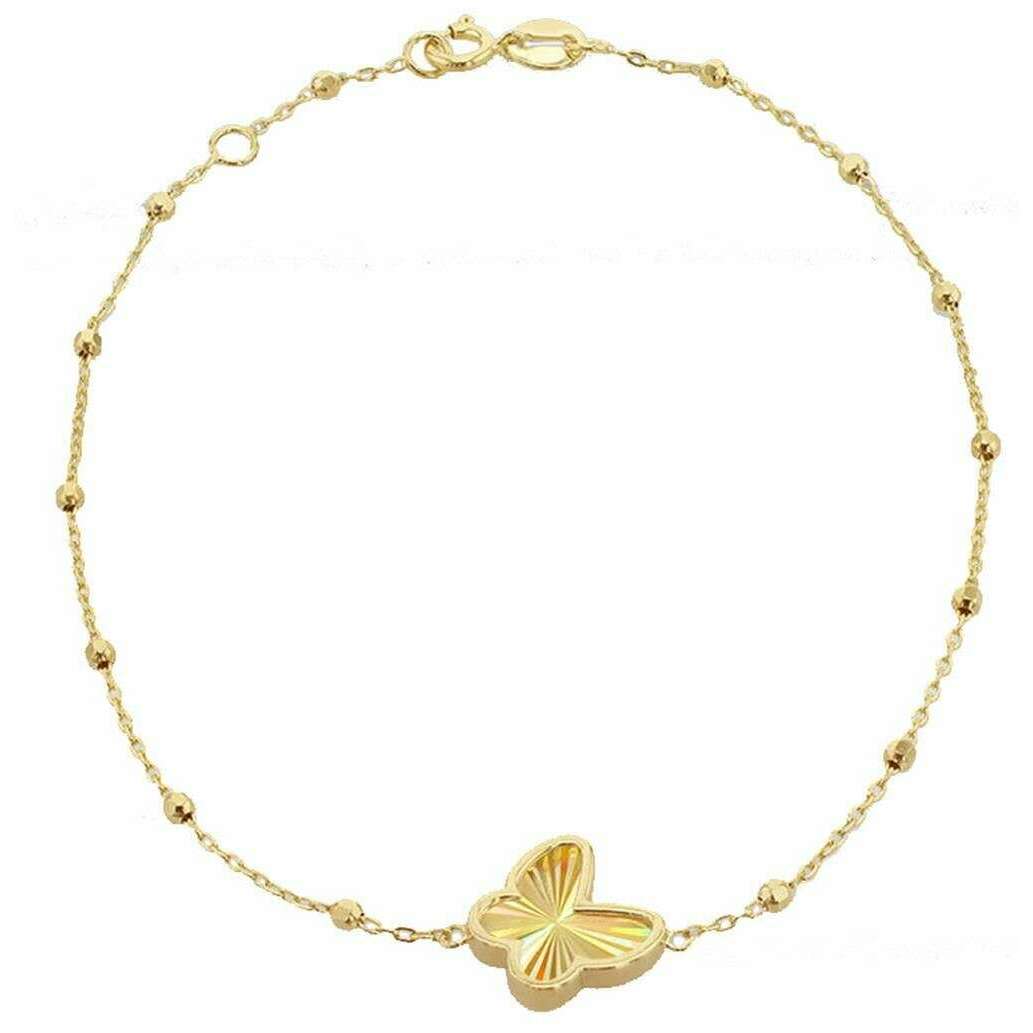 KJ Beckett Rainbow Butterfly Adjustable Trace and Ball Bracelet - Yellow Gold