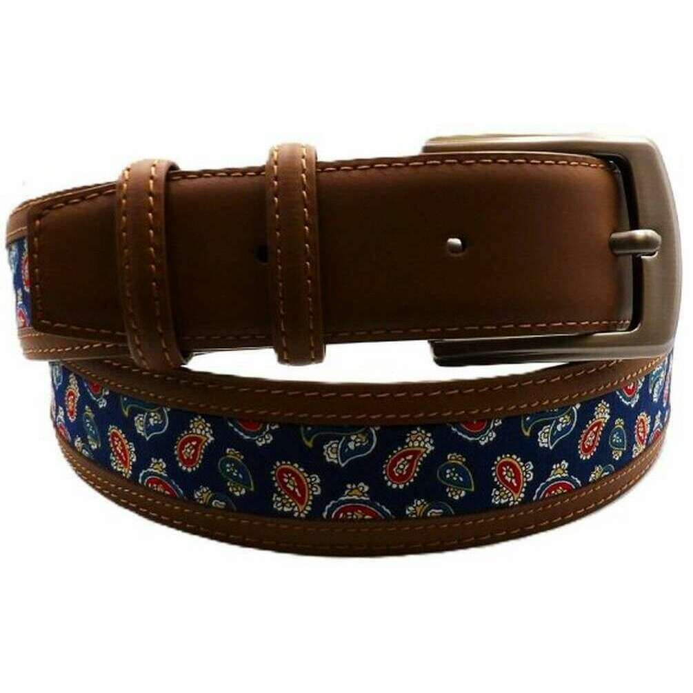 Knightsbridge Neckwear Buckingham Paisley Leather Belt - Brown