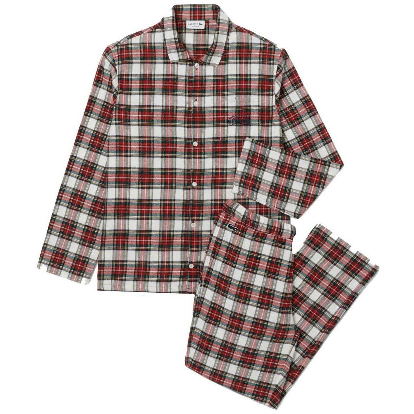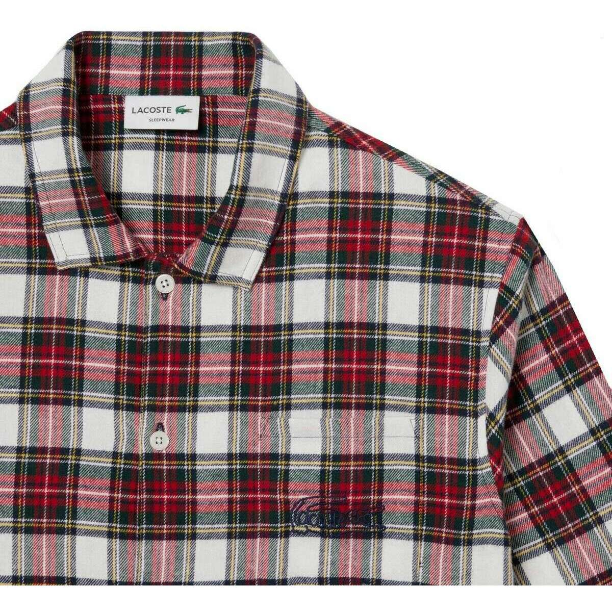 Manufactured from 100% cotton are these ladybird red/white/green men's plaid poplin pyjama set by the designer Lacoste. Also the ladybird red/white/green pyjamas are designed in a tartan pattern, It is recommended to wash at 30 degrees, do not tumble dry, do not bleach and do not dry clean to keep these pyjamas in good condition. All the pyjamas come complete in lacoste packaging. The Lacoste Plaid Poplin Pyjama Set - Ladybird Red/White/Green feature a relaxed and cosy fit, perfect for the colder months when you want to lounge with a hot drink and feel at ease. The stylish plaid pattern ensures you look your absolute best so that you can feel it too while also providing a breast pocket. The pants are straight cut and have been designed with an elasticated waist for optimal comfort and the long sleeve shirt is embellished with branded buttons and of course, the iconic embroidered croc on both pieces.