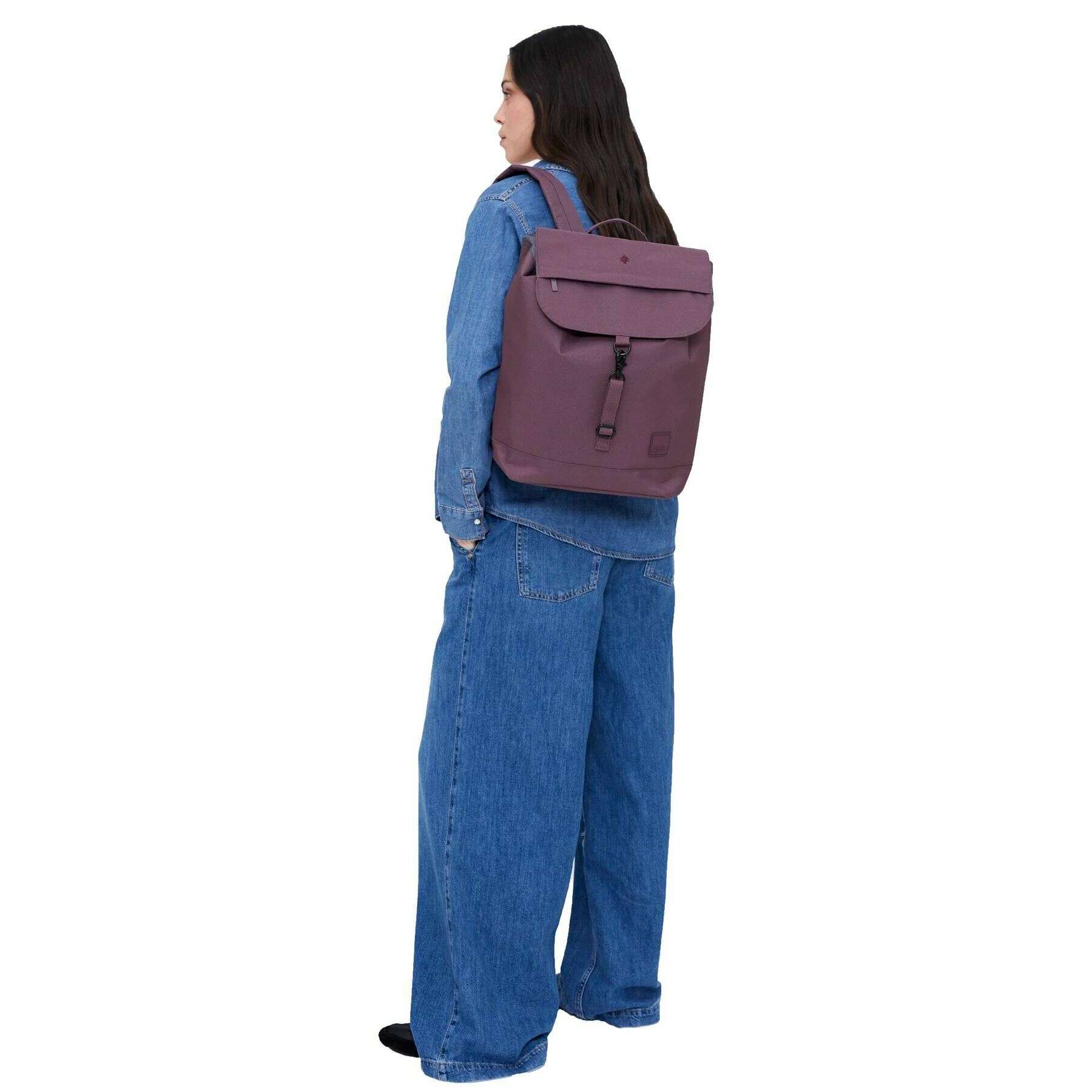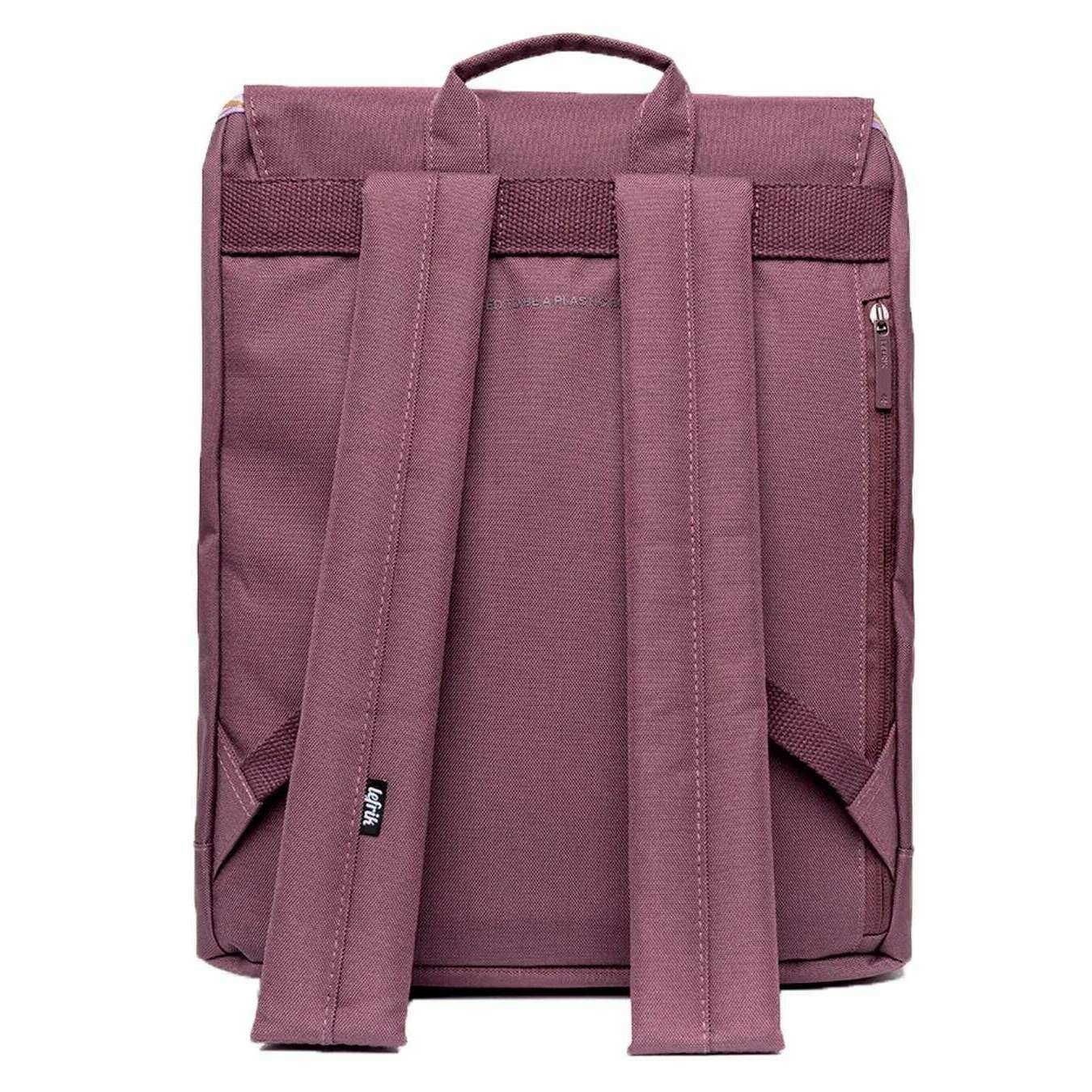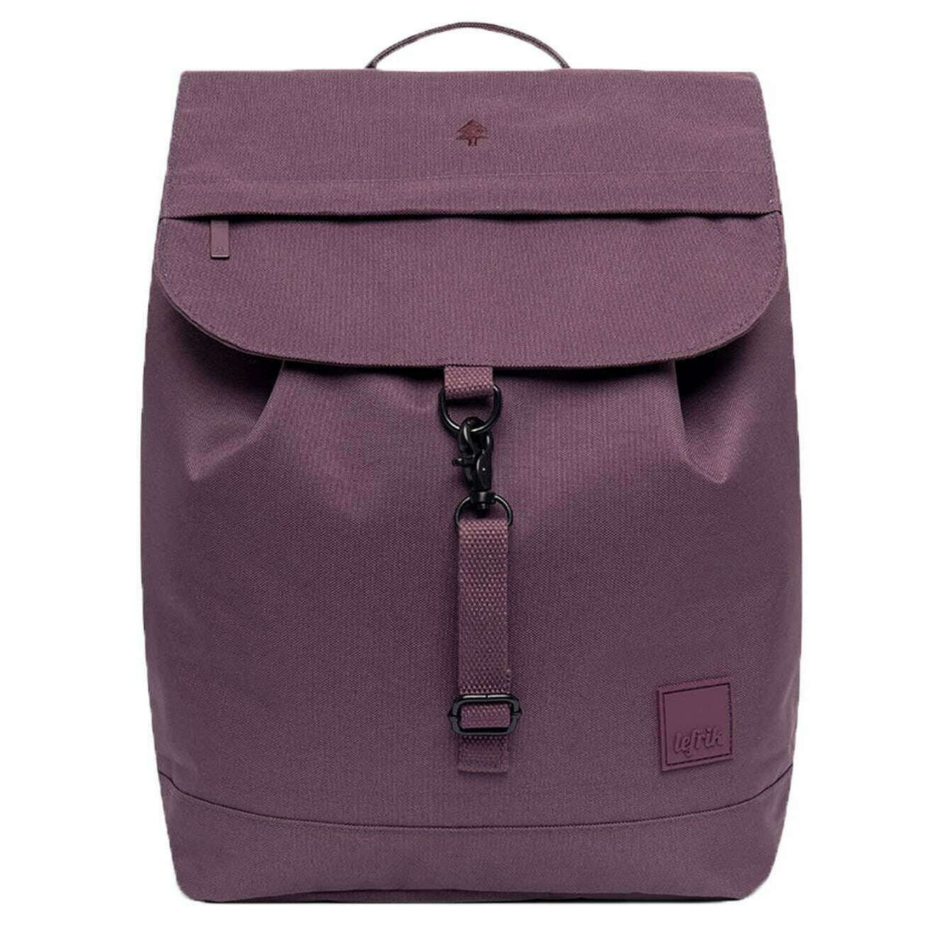 Designer Lefrik has brought you this unisex 100% vegan oxford rpet fabric bag using maroon purple tones. It measures 40cm(height) x 30cm(width) x 16cm(depth). All the bags come complete with lefrik packaging. The Lefrik Kaut Backpack - Maroon Purple is the perfect round bag that suits any style! Extremely practical and comfortable, this design features a large main compartment for laptops up to 13.6" and two separate pockets to keep your items safe and secure. A quick access pocket on the flap, and a security pocket allow for easy retrieval of smaller items. With metal hook fastening and adjustable handles, this lightweight backpack is designed to meet various needs, from outdoor adventures to everyday use.