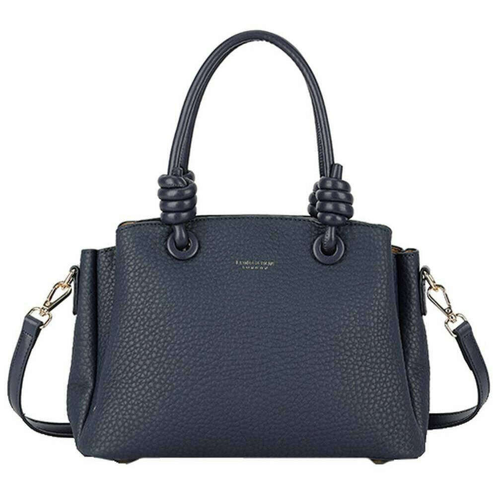 Using navy 100% polyurethane, this knot crossbody bag by Long and Son is perfect for women and a must have. It measures 20cm(height) x 28cm(width) x 13cm(depth). All the bags come complete with long & son packaging. The Long and Son Knot Crossbody Bag - Navy features a large interior with an open and zipper pocket, extra compartments either side of the zipper held together with magnetic closures for extra storage and feet studs for protection when placing down. This bag doubles up as cross body and a handbag with the two carry handles and detachable adjustable crossbody strap. Great for an everyday bag due to the versatility and optimal storage.