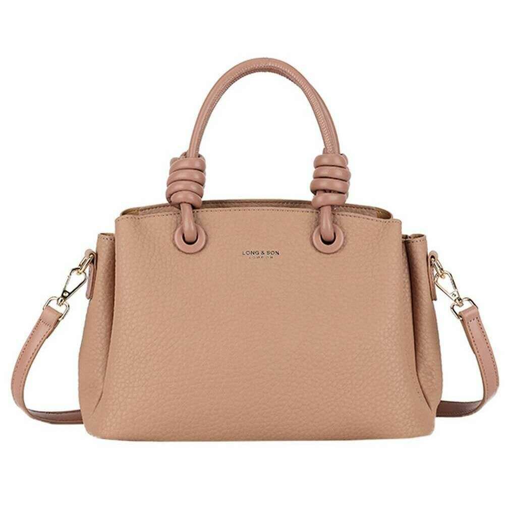 This knot crossbody bag for women is fashioned by the brand Long and Son in a pink colour and is made from 100% polyurethane. It measures 20cm(height) x 28cm(width) x 13cm(depth). All the bags come complete with long & son packaging. The Long and Son Knot Crossbody Bag - Pink features a large interior with an open and zipper pocket, extra compartments either side of the zipper held together with magnetic closures for extra storage and feet studs for protection when placing down. This bag doubles up as cross body and a handbag with the two carry handles and detachable adjustable crossbody strap. Great for an everyday bag due to the versatility and optimal storage.