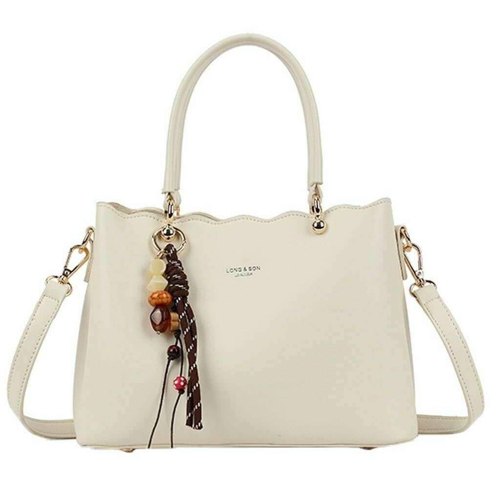 Using white 100% polyurethane, this scalloped edge crossbody bag by Long and Son is perfect for women and a must have. It measures 18cm(height) x 24.5cm(width) x 11cm(depth). All the bags come complete with long & son packaging. The Long and Son Scalloped Edge Crossbody Bag - Off White features a large interior with pockets, extra compartments either side of the zipper held together with magnetic closures for extra storage and feet studs for protection when placing down. This bag doubles up as cross body and a handbag with the two carry handles and detachable adjustable crossbody strap. Great for an everyday bag due to the versatility and optimal storage. Complete with the scalloped detailing for a girly touch.