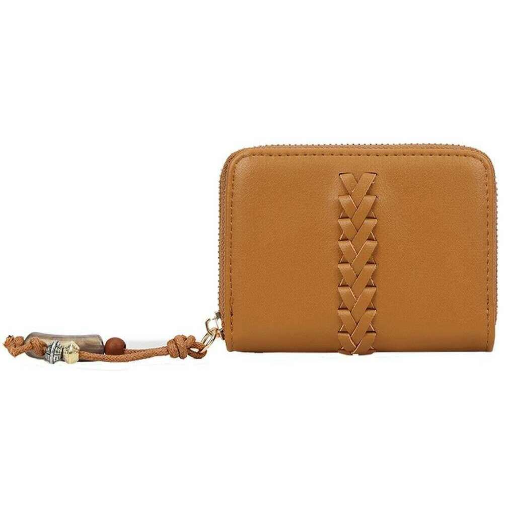 Manufactured from 100% polyurethane is this brown women's woven detail purse by the designer Long and Son. It measures 9cm(height) x 12cm(width) x 2.5cm(depth). All the purses come complete with long & son packaging. The Long and Son Woven Detail Purse - Brown will become your everyday companion, complimenting your bag and your style when shopping. This small and compact purse features great storage with 12 small sections, a card holder and a zipper pocket. The zippered closures ensure this purse is secure without the fear of losing your valuables. To top it all this purse features RFID blocking technology to prevent unauthorised scanning of your information. Complete with a charm zip pull and subtle gold hardware throughout.