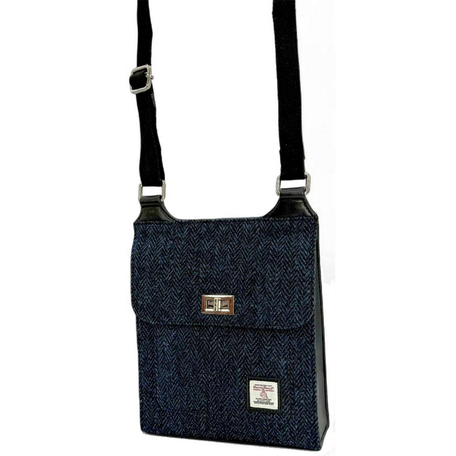 This women's harris tweed satchel bag by the brand Maccessori is made from harris tweed and vegan leather and is showcased in blue. It measures 25cm(height) x 22cm(width) x 6cm(depth). It is recommended to wipe clean with cloth to keep this bag in good condition. All the bags come complete in maccessori packaging. The Maccessori Harris Tweed Satchel Bag - Navy has everything you need in a smaller, more stylish form. Perfect for those who like to carry light but still have enough room for their essentials. Fitted with an adjustable cross body strap, it can be carried effortlessly and offers multiple compartments throughout. The timeless Harris Tweed design with vegan leather back and trim will certainly turn heads making it a must have for your collection.