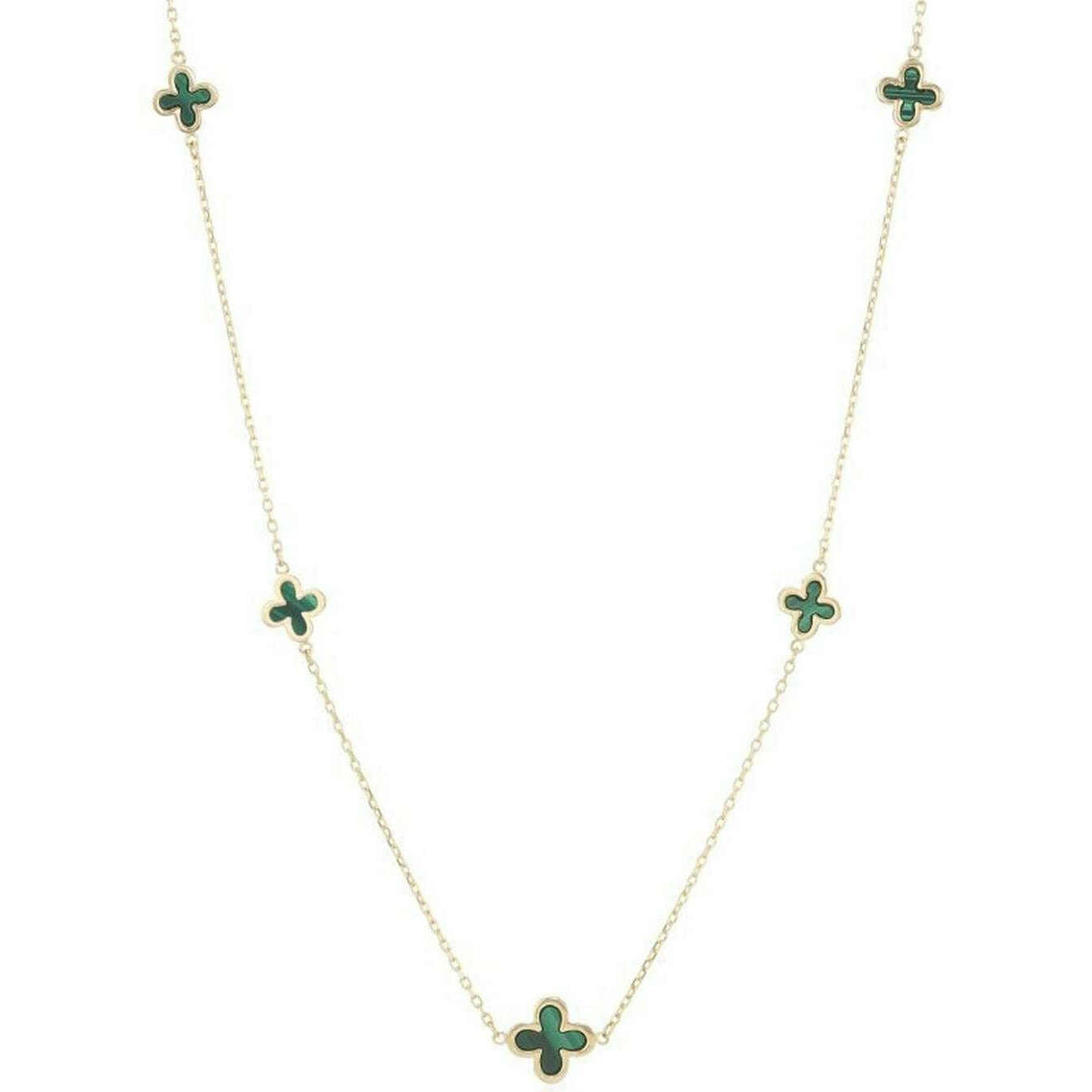 Mark Milton Five Malachite Flower Necklace - Yellow Gold/Green