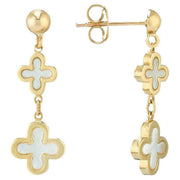 Mark Milton Mother of Pearl Flower Drop Earrings - Yellow Gold/white