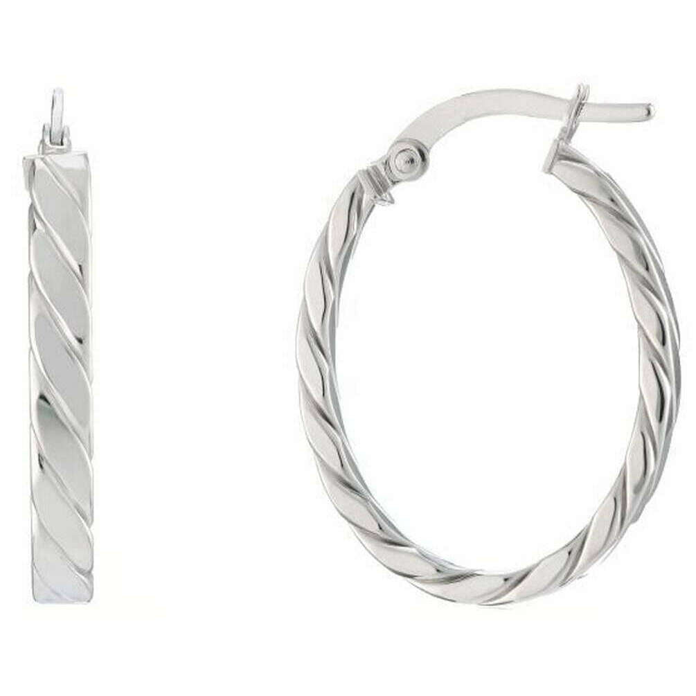 Manufactured from 9ct gold are these white gold women's oval hoop earrings by the designer Mark Milton. It measures 2.5cm(height) x 1.8cm(width) x 0.3cm(depth). All the earrings come complete with mark milton packaging. The Mark Milton Oval Hoop Earrings - White Gold are a must-have to add to your earring rotation with its unique twist design. Perfect for matching with your style whatever the occasion. These make for the perfect gift for yourself or someone else!