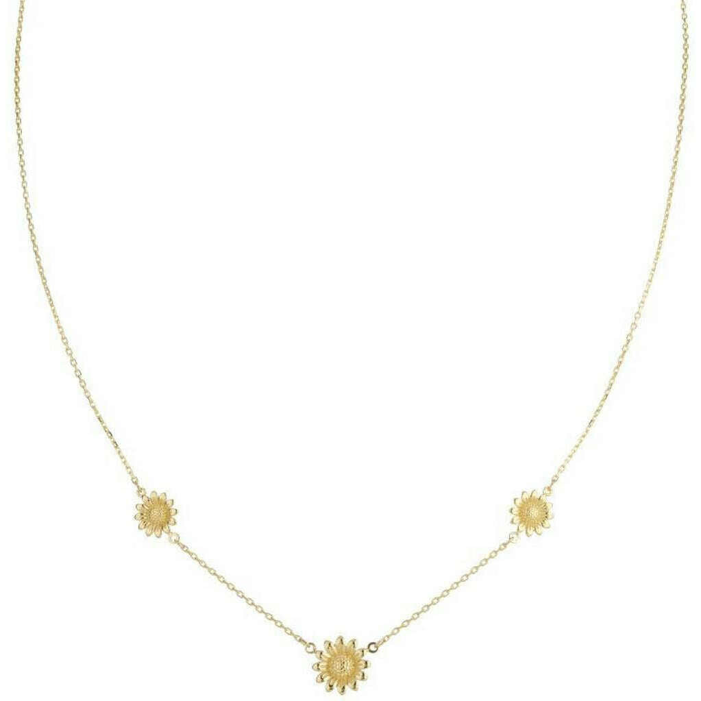 Manufactured from 9ct gold is this yellow gold women's sunflower necklace by the designer Mark Milton. It measures 45cm(length). All the necklaces come complete with mark milton packaging. The Mark Milton Sunflower Necklace - Yellow Gold features three elegant sunflowers on a gold chain, this necklace is stunning and has an eye-catching design, perfect for day-to-day wearing or adding a little unique flare to your evening attire.