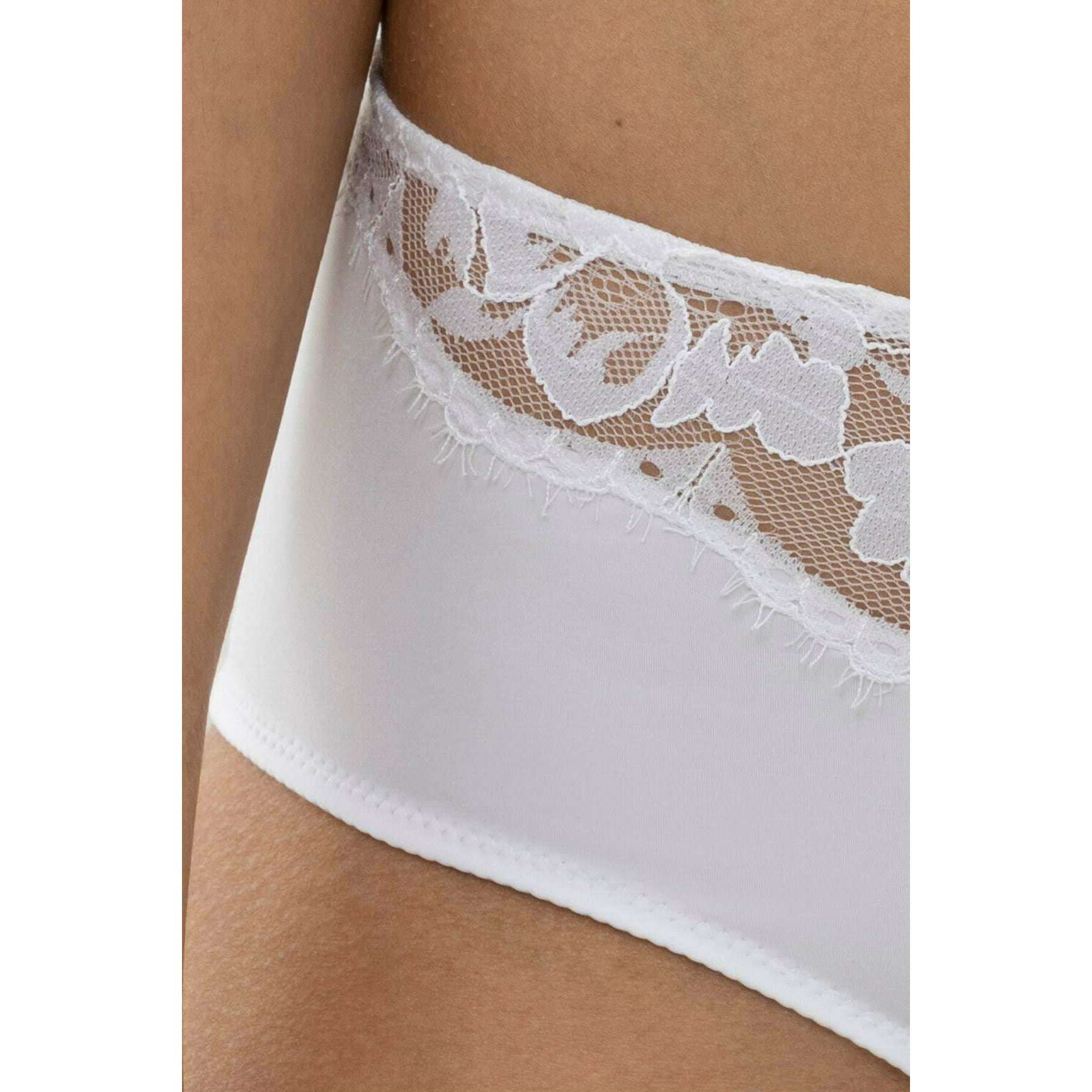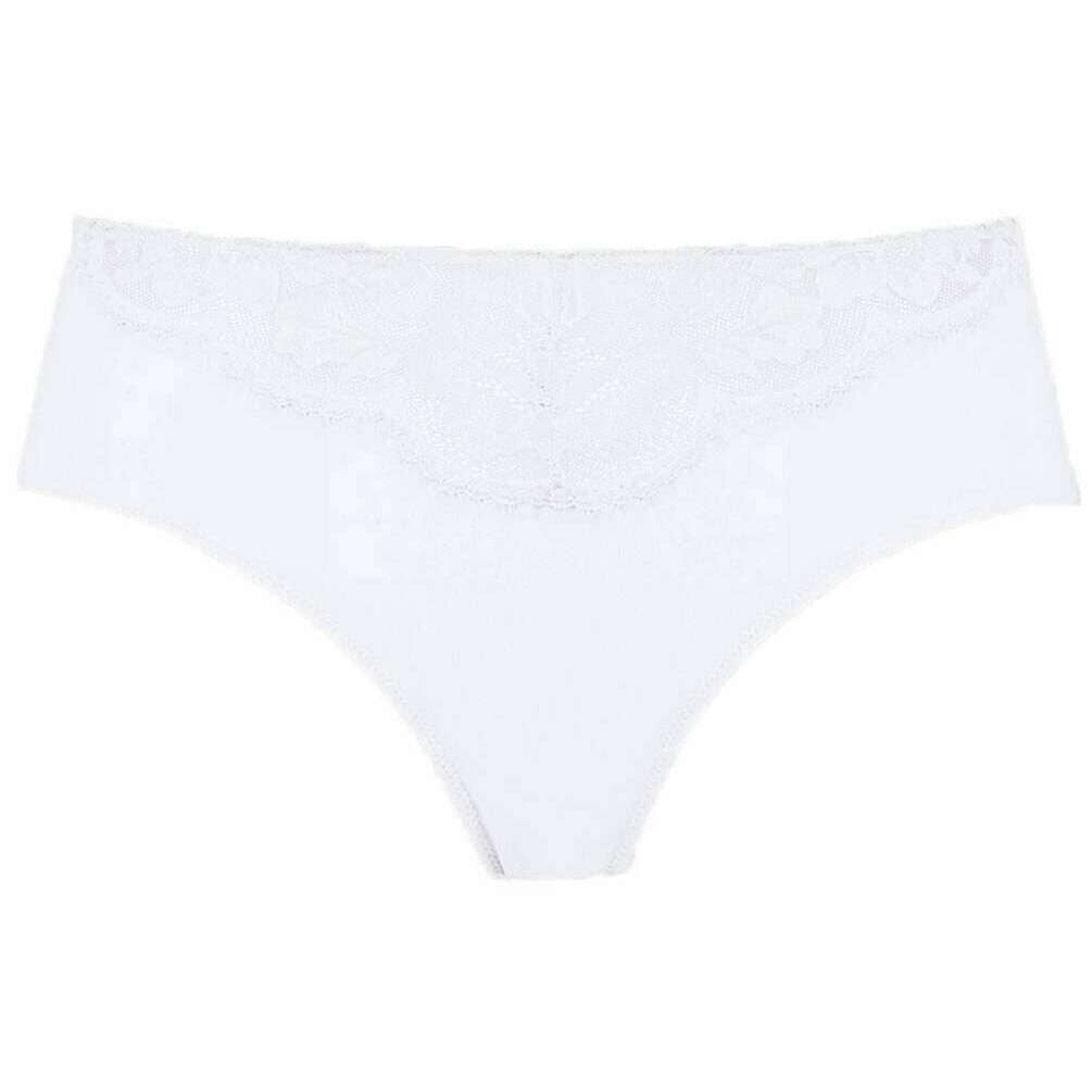 Manufactured from 78% polyamide and 22% elastane is this white women's amazing american pants by the designer Mey. Also the white underwear is designed in a plain pattern, It is recommended to machine wash at 30 degrees to keep this underwear in good condition. All the underwear comes complete with mey packaging. The Mey Amazing American Pants - White are a must-have if you are looking for a basic with a gorgeous touch for a feminine feel. This pair has a low rise, a cotton insert on the gusset, seamless legs and a narrow waistband which all contribute to giving optimal comfort for an everyday wear. The lace front gives an elegant flair.