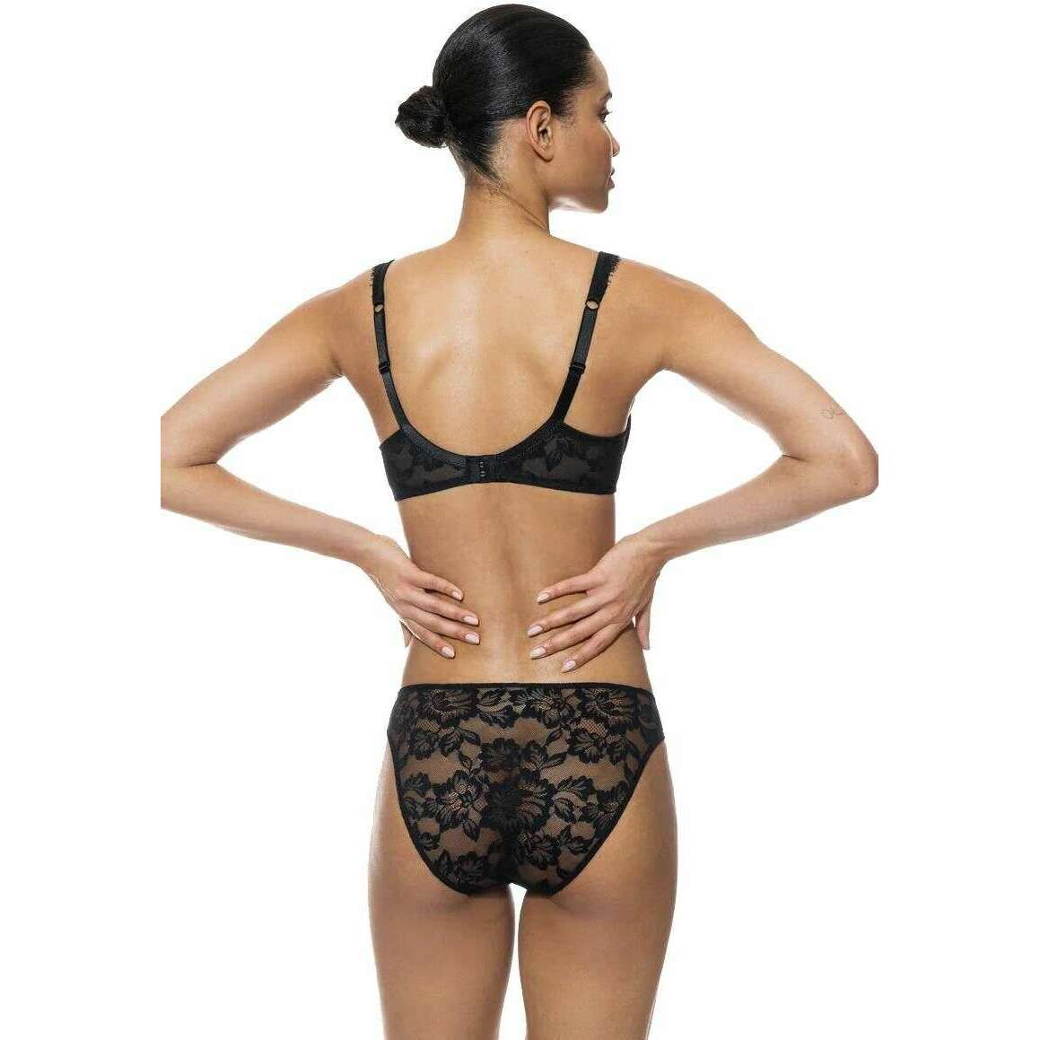 Manufactured from 80% polyamide and 20% elastane is this black women's amazing spacer full cup bra by the designer Mey. Also the black underwear is designed in a plain pattern, It is recommended to hand wash, do not bleach, do not iron, no chemical cleaning to keep this underwear in good condition. All the underwear comes complete in mey packaging. The Mey Amazing Spacer Full Cup Bra - Black is decorated with beautiful floral lace throughout, with eyelash detailing on the straps and cups for a sexy elegance. The under band is fully laced and wired for supreme support. The straps are adjustable and it features a three-way adjustable hook and eyelet fastening for a secure fit.