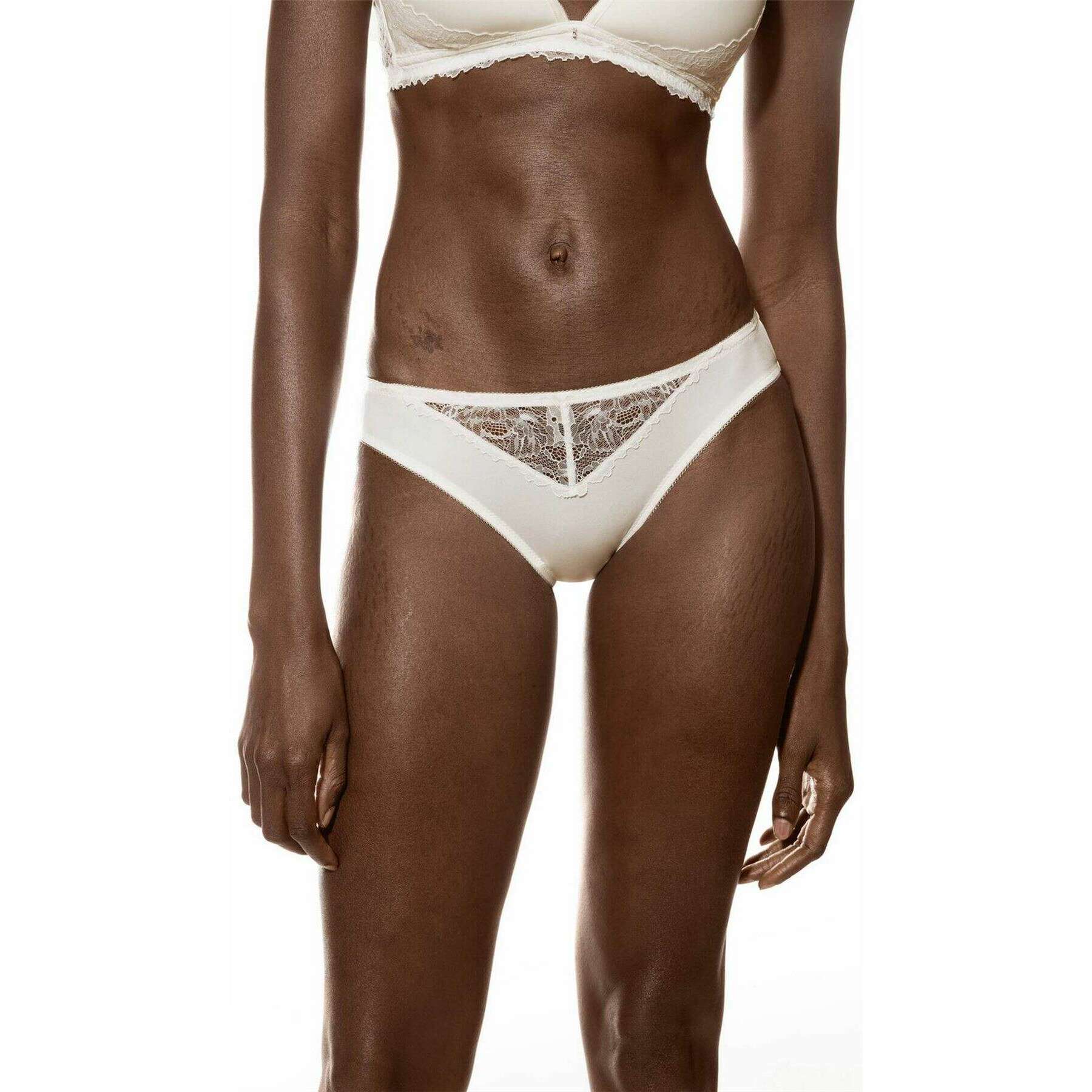 • OEKO-TEX Standard 100 , Low-Rise Fit , Flat Waistband , Front Lace Insert , Soft Leg Openings , Cotton Insert on Gusset , Two-Tone Lace