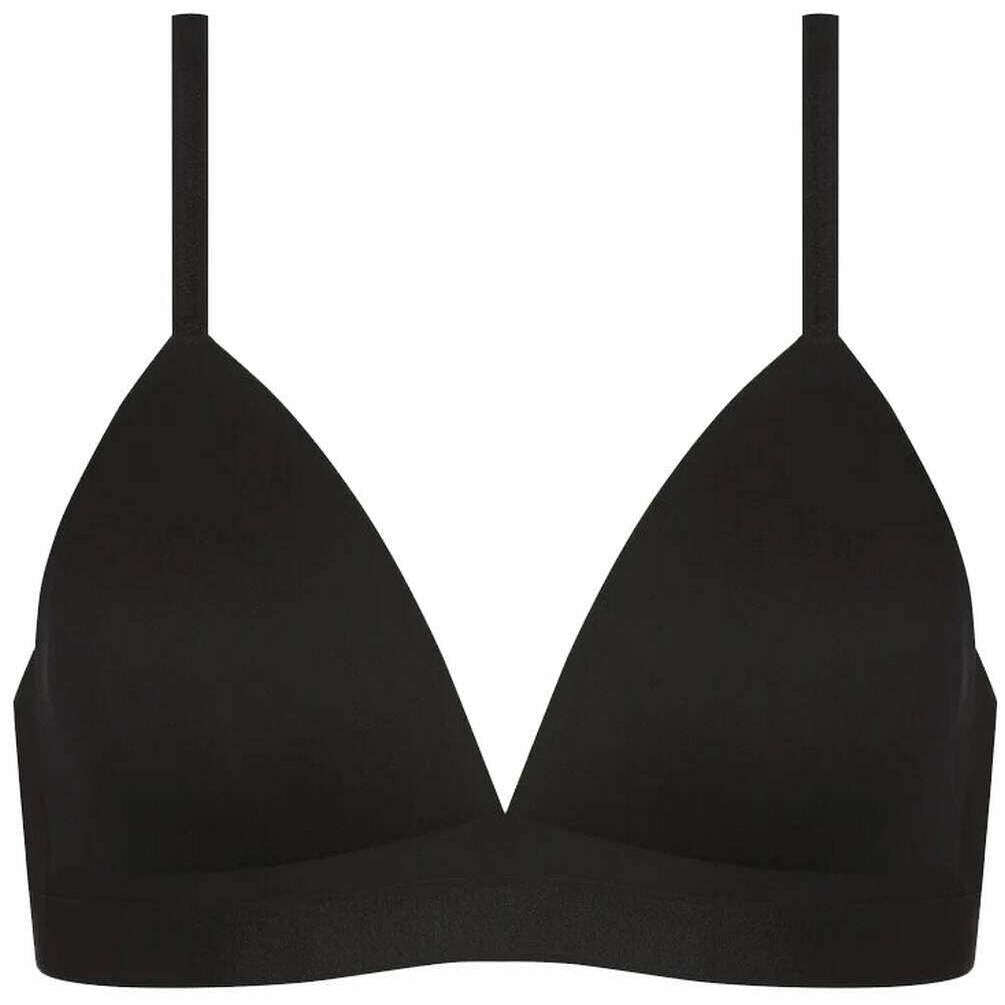 Introducing this women's poetry stellar triangle bra by Mey, it is manufactured from 87% polyamide and 13% elastane in a black colour. Also the black underwear is designed in a plain pattern, It is recommended to machine wash at 30 degrees with delicates to keep this underwear in good condition. All the underwear comes complete in mey packaging. The Mey Poetry Stellar Triangle Bra - Black is the perfect choice if you are looking for subtle support but going for the comfort is key approach. The bralette form is fitted with 4-way stretch pads with a smooth finish and no underwire which ensure optimal comfort while still giving you the support you need. The straps can be adjusted to the desired fit making this a choice that you will be reaching for every day.
