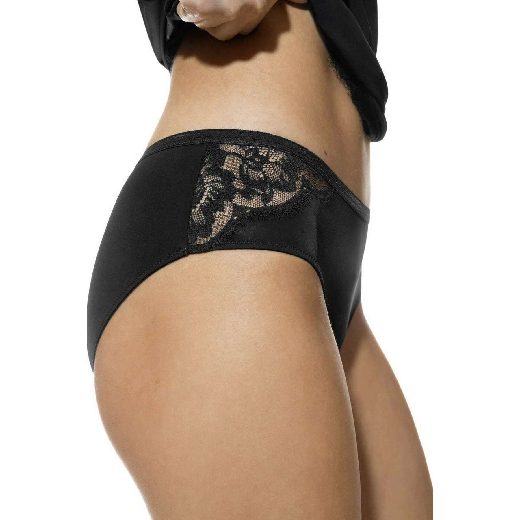Using black 93% viscose and 7% elastane, this poetry vogue hipster briefs by Mey is perfect for women and a must have. Also the black underwear is designed in a plain pattern, It is recommended to machine wash at 30 degrees to keep this underwear in good condition. All the underwear comes complete with mey packaging. The Mey Poetry Vogue Hipster Briefs - Black features a natural feel which is perfect for everyday and the mid-rise fit with a flat elasticated waistband ensures you are comfortable all day long. They have a cotton insert on the gusset for intimate protection as well as comfort and the beautiful lace sides will give you confidence and make you feel great.