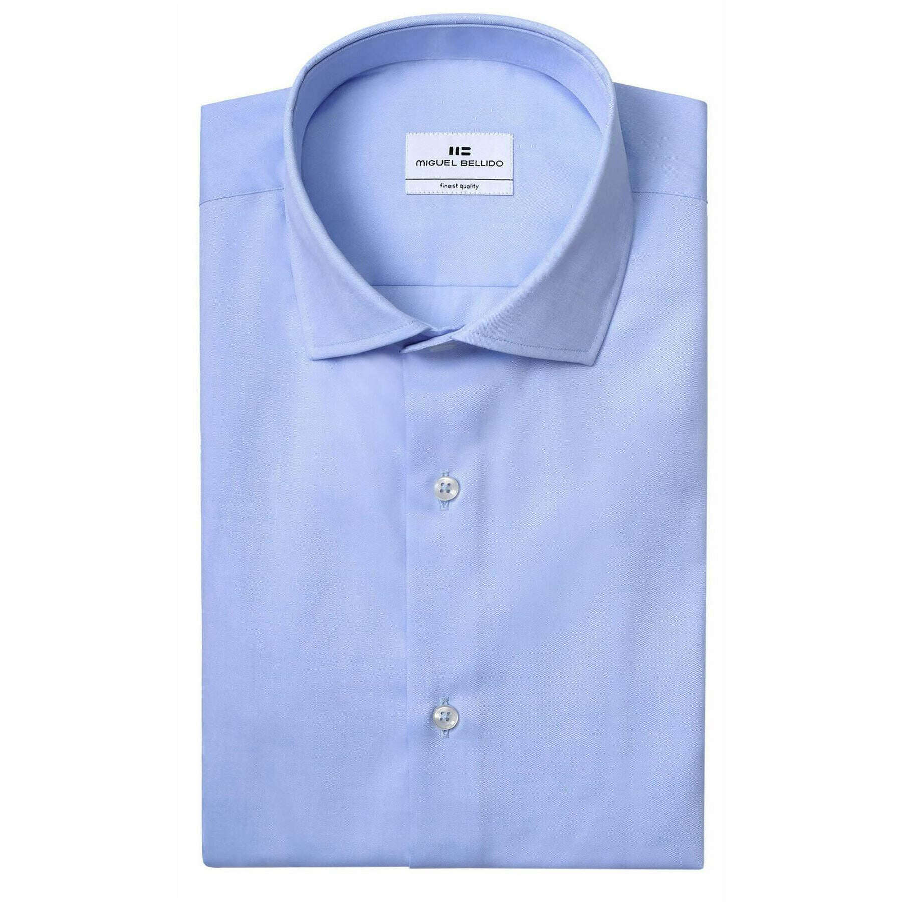 Manufactured from 100% cotton is this blue men's classic regular long sleeve shirt by the designer Miguel Bellido. Also the blue shirt is designed in a plain pattern, All the shirts come complete in a miguel bellido box. The Miguel Bellido Classic Regular Long Sleeve Shirt - Blue will allow you to elevate your formal wear in a sophisticated and timeless fashion. Perfect for those who appreciate subtle details that contribute to refined style. This long sleeve shirt offers a relaxed fit and has been made with a breathable and premium fabric that guarantees a flawless wear. Its design displays traditional tailoring to ensure adaptability and features a mixed round cuff ensuring you can adapt to different occasions.