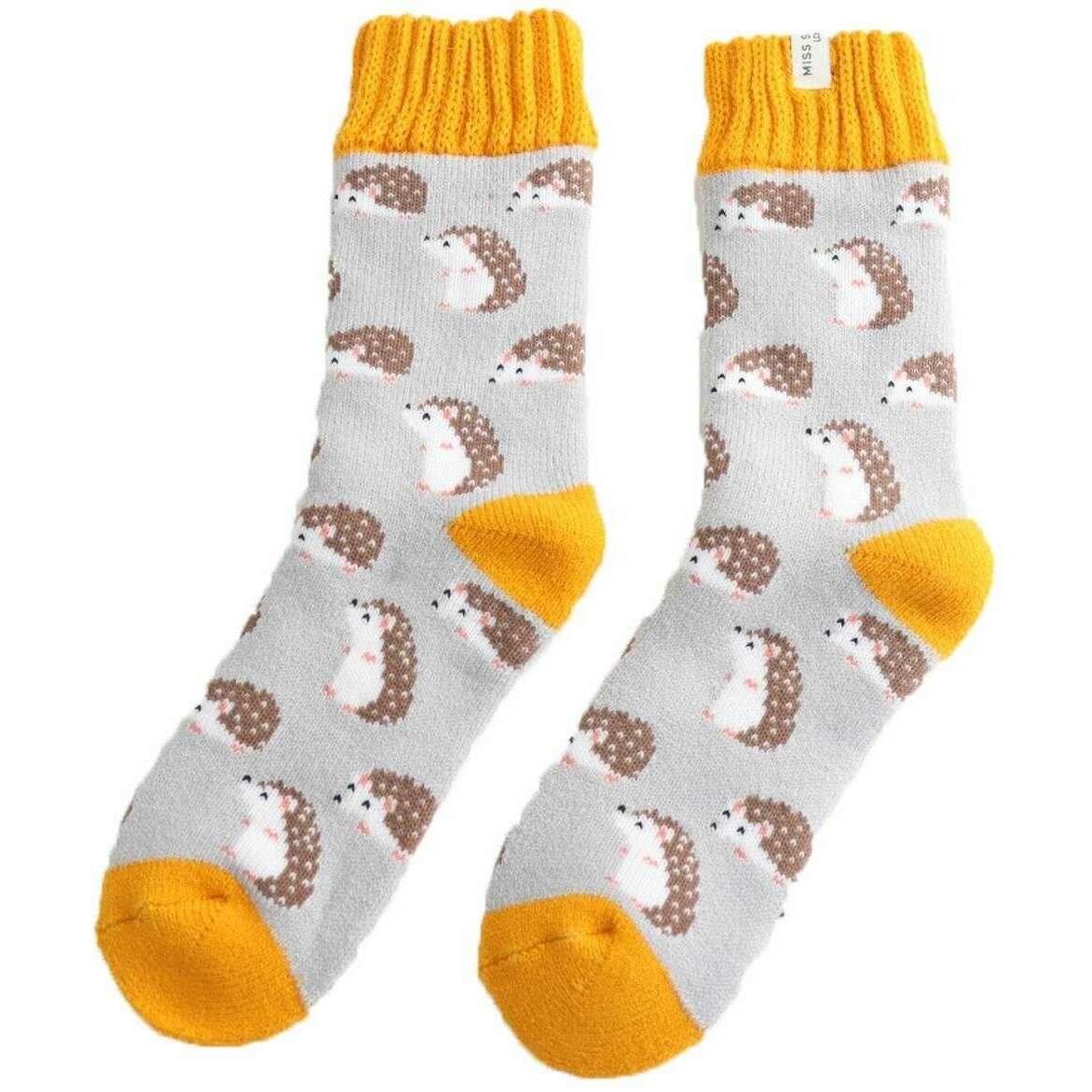 Miss Sparrow London Cute Hedgehogs Winter Socks - Silver Grey