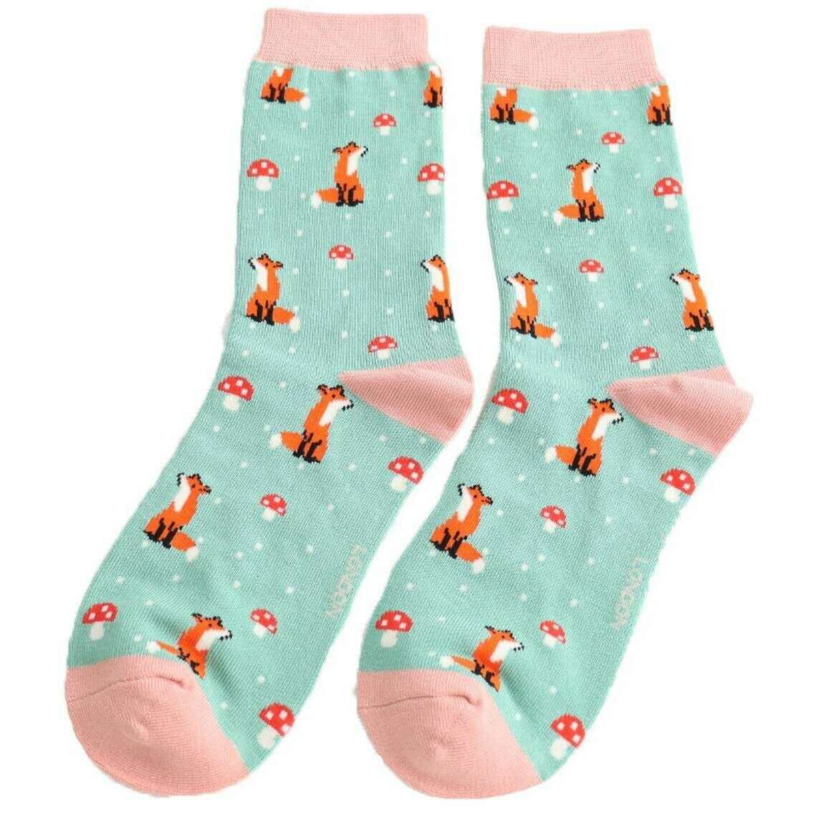 Miss Sparrow London Fox and Toadstool Bamboo Socks - Green