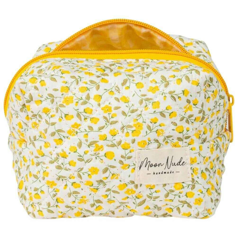 Manufactured from 100% cotton is this white/yellow/beige women's buttercup mini makeup bag by the designer Moon Nude. It measures 13cm(height) x 15cm(width) x 11cm(depth). It is recommended to wash by hand in cold water with a mild detergent, or maching wash inside out on a delicate cycle. to keep this bag in good condition. All the bags come complete with moon nude packaging. The Moon Nude Buttercup Mini Makeup Bag - White/Yellow/Beige is an absolute necessity for your room or everyday bag. This makeup bag is guaranteed to keep all your most used products together and safe, whilst also being stylish and chic with its handmade quilted design.