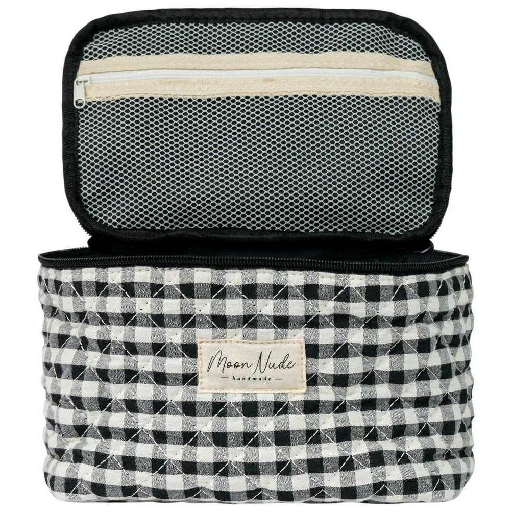 Brought to you by the brand Moon Nude, this black/white women's classic vanity bag is made from 100% cotton. It measures 16cm(height) x 22cm(width) x 14cm(depth). It is recommended to wash by hand in cold water with a mild detergent, or maching wash inside out on a delicate cycle. to keep this bag in good condition. All the bags come complete with moon nude packaging. The Moon Nude Classic Vanity Bag - Black/White is an absolute necessity for travelling or everyday use. This vanity bag is guaranteed to keep all your makeup or skin care in one place, whilst also being stylish and fashionable with its handmade quilted design.