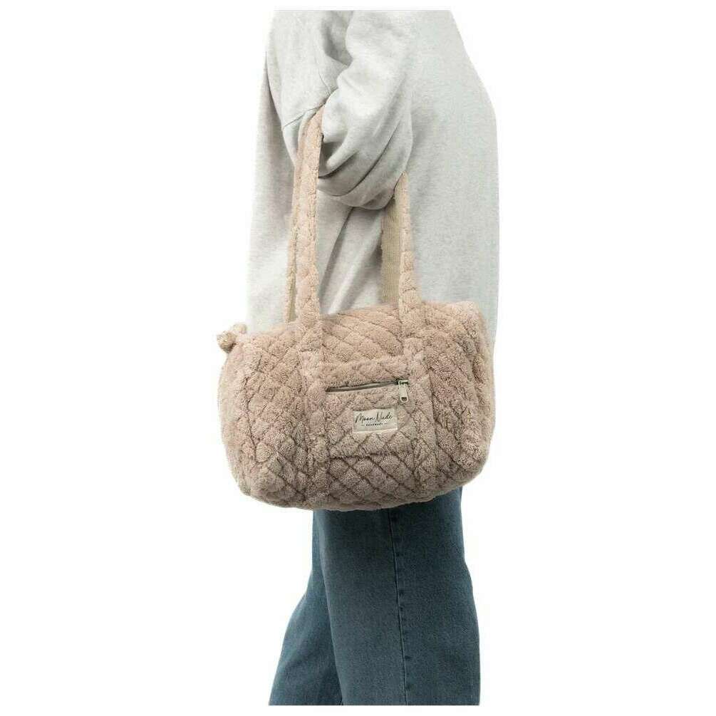 Perfect for women is this Moon Nude beige teddy mini duffel bag, it is also made from 100% cotton. It measures 18cm(height) x 31cm(width) x 18cm(depth). It is recommended to wash by hand in cold water with a mild detergent, or maching wash inside out on a delicate cycle. to keep this bag in good condition. All the bags come complete with moon nude packaging. The Moon Nude Teddy Mini Duffel Bag - Beige features a beautiful handmade quilted design. This bag features an exterior zip pocket, a spacious interior and two large handles, perfect for a casual going out bag or as a gift.