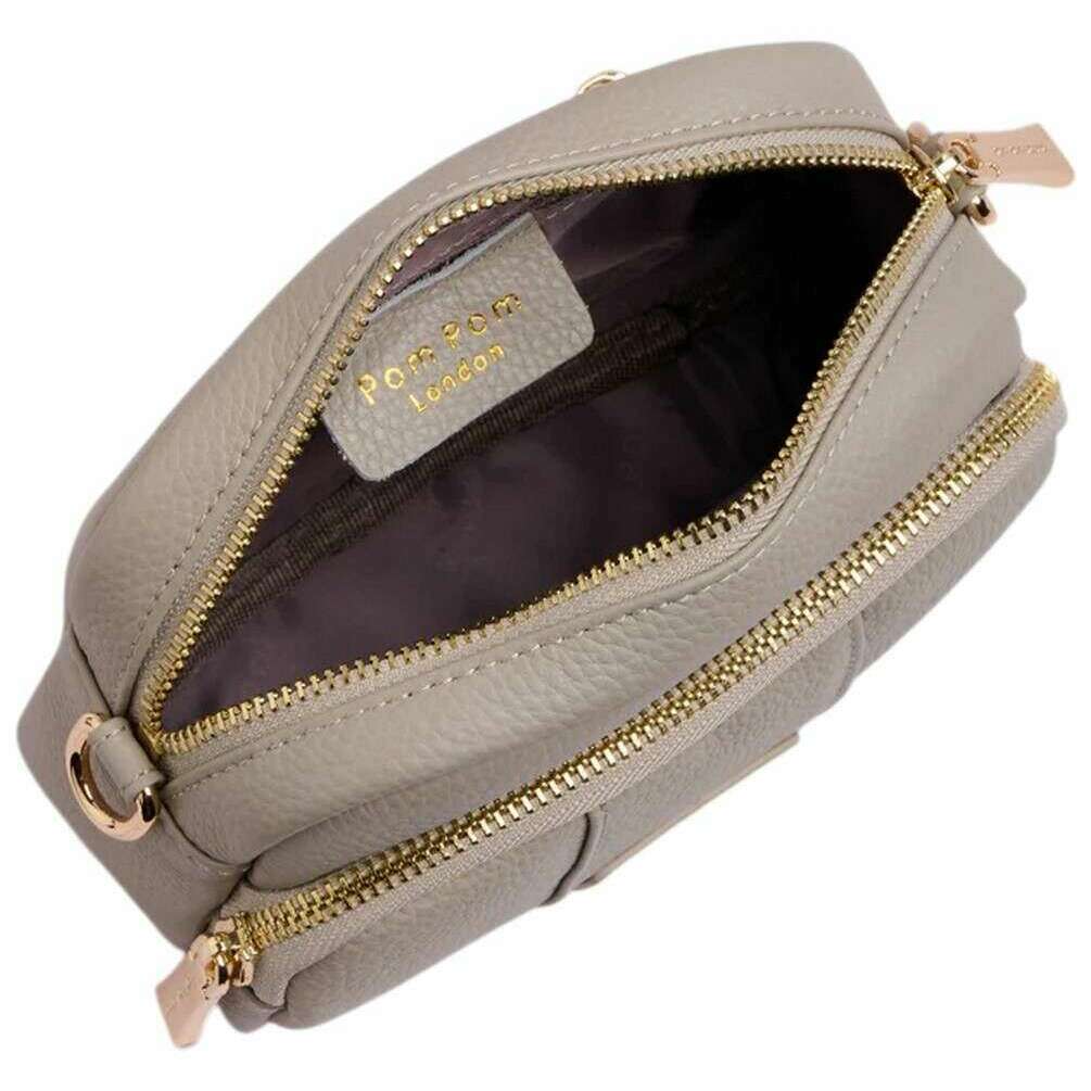 Manufactured from 100% full-grain leather is this stone women's original mini crossbody bag by the designer Pom Pom London. It measures 14cm(height) x 16cm(width) x 6.5cm(depth). All the bags come complete with pom pom london packaging. The Pom Pom London Original Mini Crossbody Bag - Stone has a petite design allowing it to transition effortlessly from everyday casual outings to more formal events, making it a versatile staple in any wardrobe. Each piece is individually handmade, giving it a luxurious finish that reflects the brand s commitment to quality craftsmanship. Designed with practicality in mind, it comfortably holds daily belongings while ensuring the wearer remains stylish and organised. The bag features an adjustable matching leather strap that extends up to 123cm, allowing for a customisable and comfortable fit. Inside, users will find a zip pocket creating an easy system for organisation. Externally, three additional zip compartments offer convenient access to frequently needed items. A double reinforced leather base enhances durability, helping the bag maintain its shape over time. Completing the design, Pom Pom London s signature gold hardware adds a refined touch, giving the bag an elegant and iconic finish.