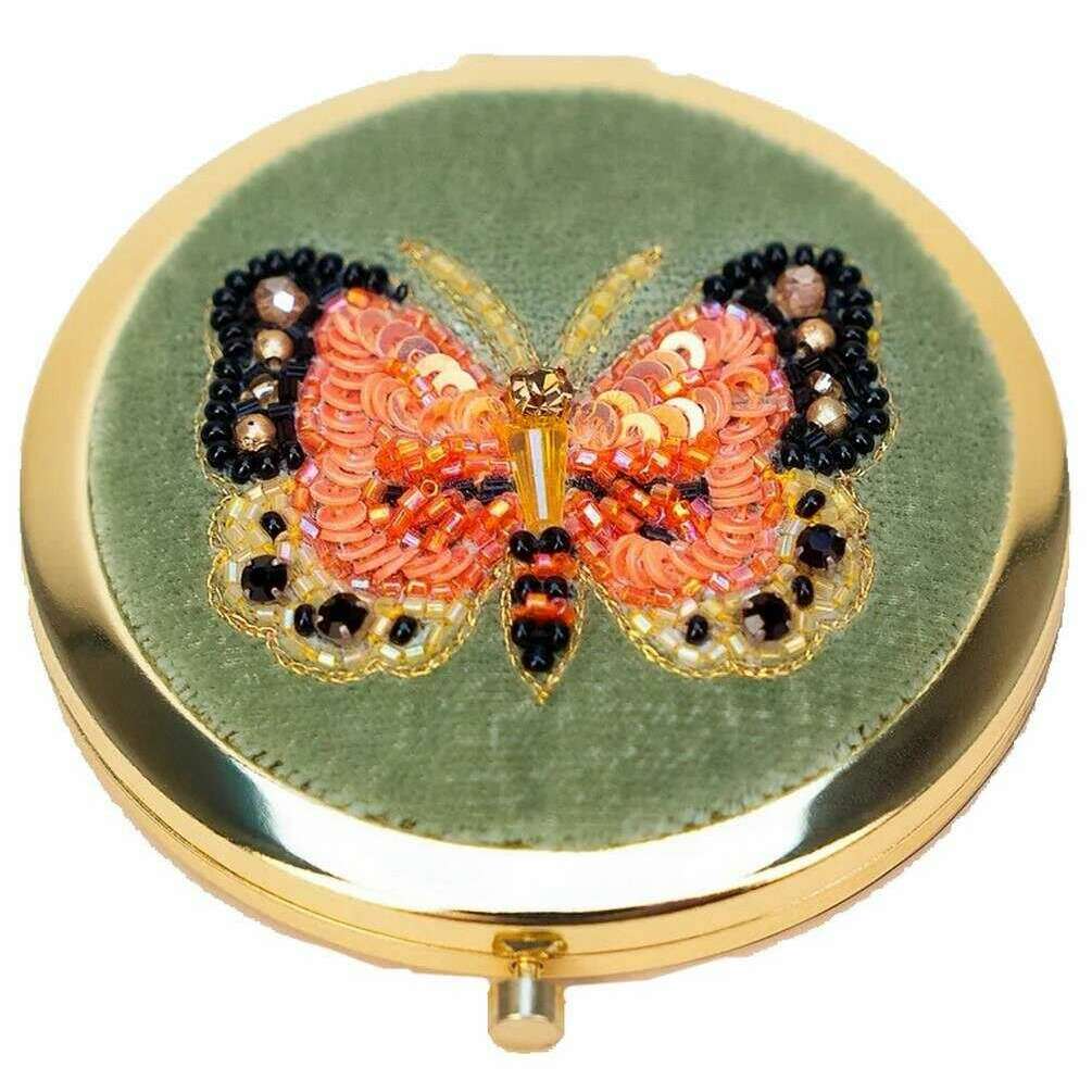 Powder Bonny Butterfly Embroidered Mirror - Green/Pink/Black