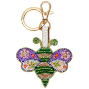 Powder Brilliant Bumblebee Beaded Keyring - Green/Purple/Cream