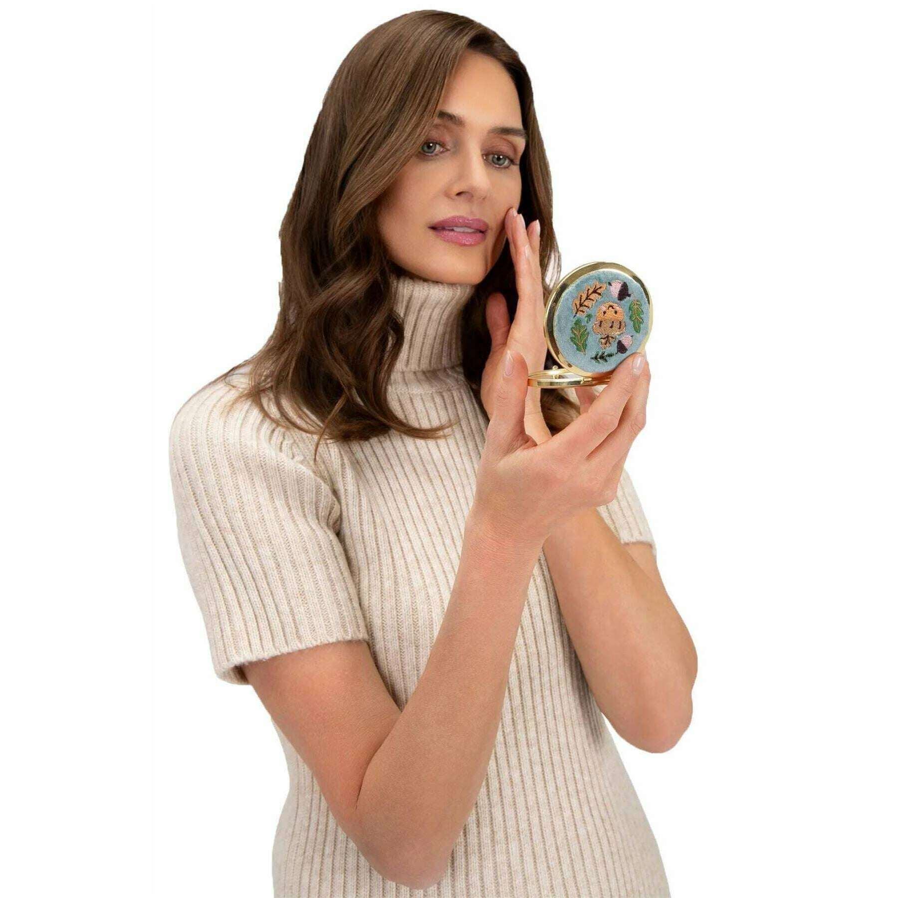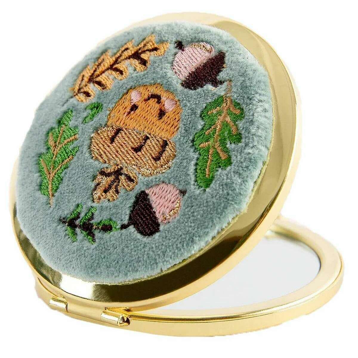 Powder Embroidered Happy Acorn Compact Mirror - Ice Blue