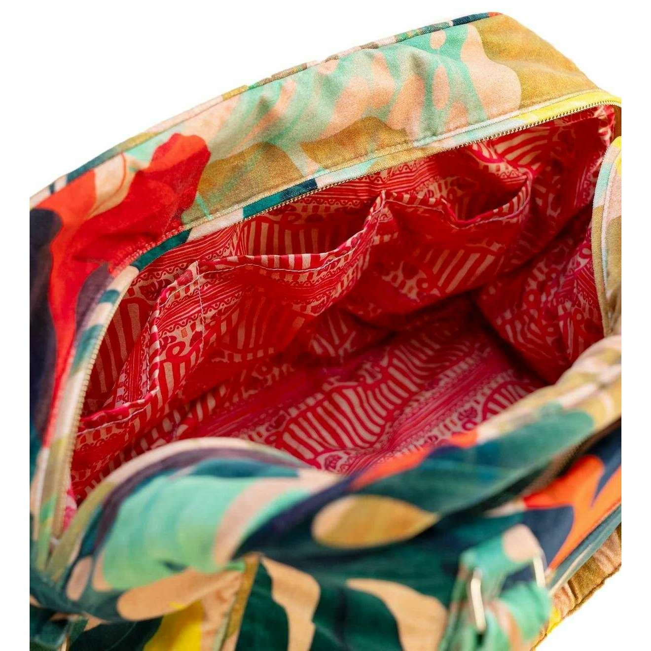 Brought to you by the brand Powder, this beige/red/green women's exotic leaves luxe weekend bag is made from 100% cotton velvet. It measures 48cm(height) x 60cm(width) x 20cm(depth). All the bags come complete with powder packaging. The Powder Exotic Leaves Luxe Weekend Bag - Beige/Red/Green is a practical and diverse bag that can be used for everyday outings, trips to the beach or short weekend getaways. The stunning vibrant leaf detail adds timeless flair, and the twin carry handles make it a comfortable carry, whether that be over the shoulder or at your side. This piece offers easy storage with its open compartment in which you can just chuck things in and pull them right out.