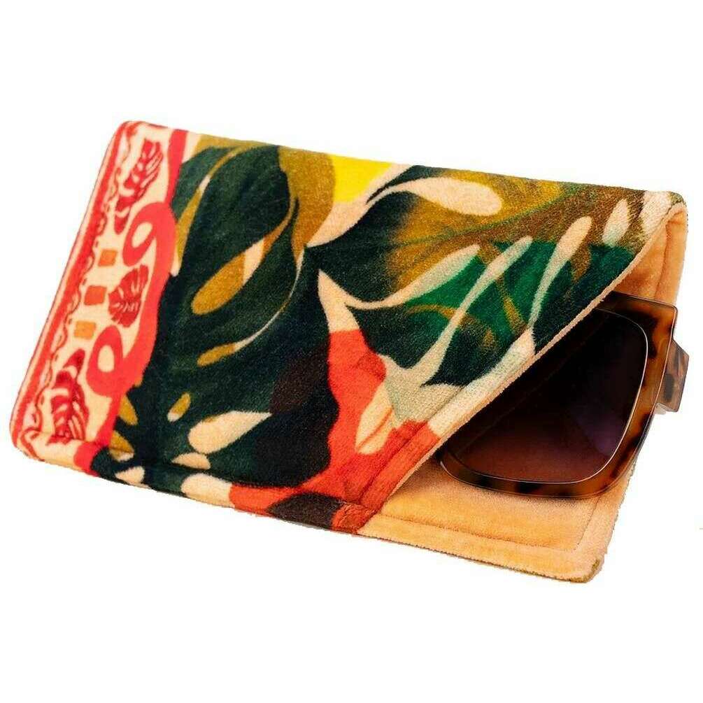This women's exotic leaves velvet sunglasses pouch by the brand Powder is made from 100% polyester velvet and is showcased in beige. It measures 19.5cm(height) x 10cm(width) x 1cm(depth). All the accessory cases come complete with powder packaging. The Powder Exotic Leaves Velvet Sunglasses Pouch - Beige/Red/Green will level up your sunglasses game, keeping them safe and protected in style. As well as beautiful, the design is also practical and has easy access to your sunglasses for when you need them.
