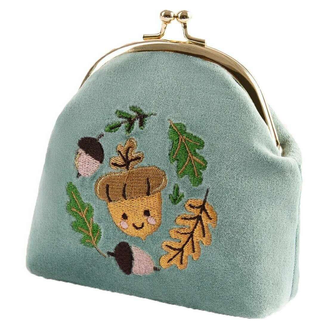 Powder Happy Acorn Velvet Coin Purse - Ice Blue
