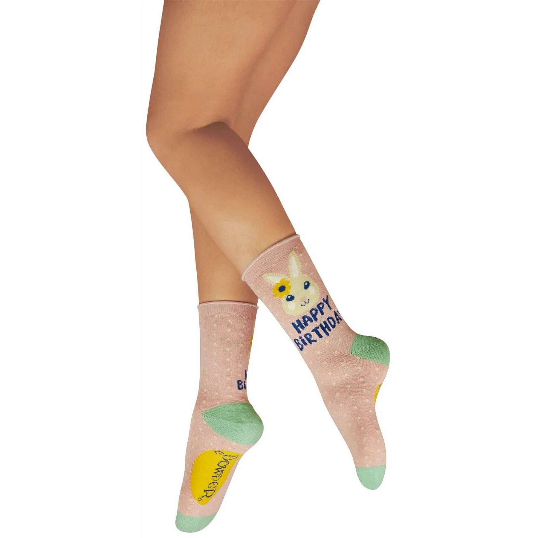 Powder Happy Birthday Bunny Ankle Socks - Pink/Green/Yellow