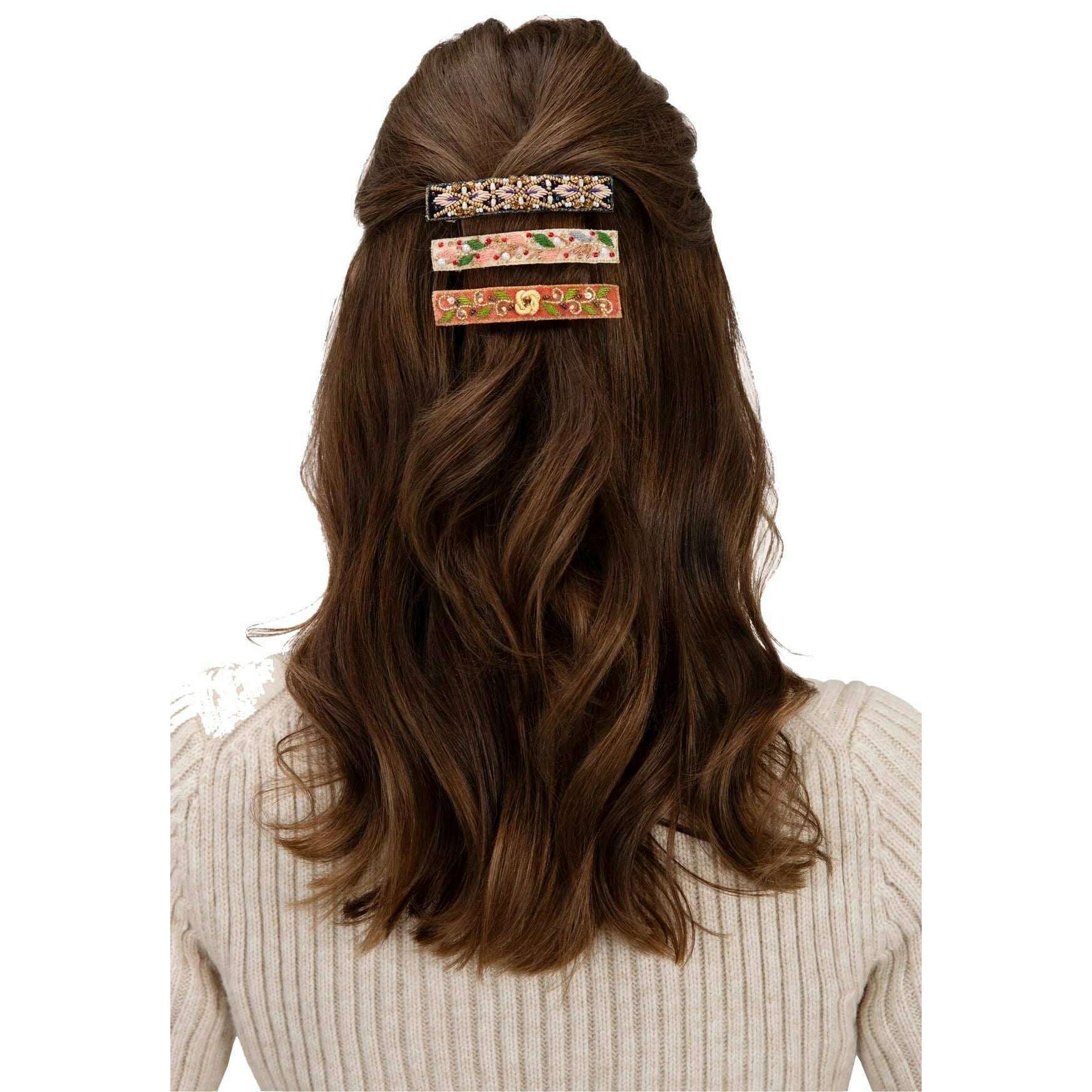 This women's holy berry hair barette has been made from 100% metal and 100% polyester, featured in a red colour and is from the brand Powder. It measures 8.1cm(height) x 9cm(width). All the hair accessories comes complete with powder tags. The Powder Holy Berry Hair Barette - Red will elevate your hair game on any occasion, adding stylish flair that will get people gawking. Beautifully embellished with intricate sequins and embroidery this set of 2 hair bars are a must have for your collection.
