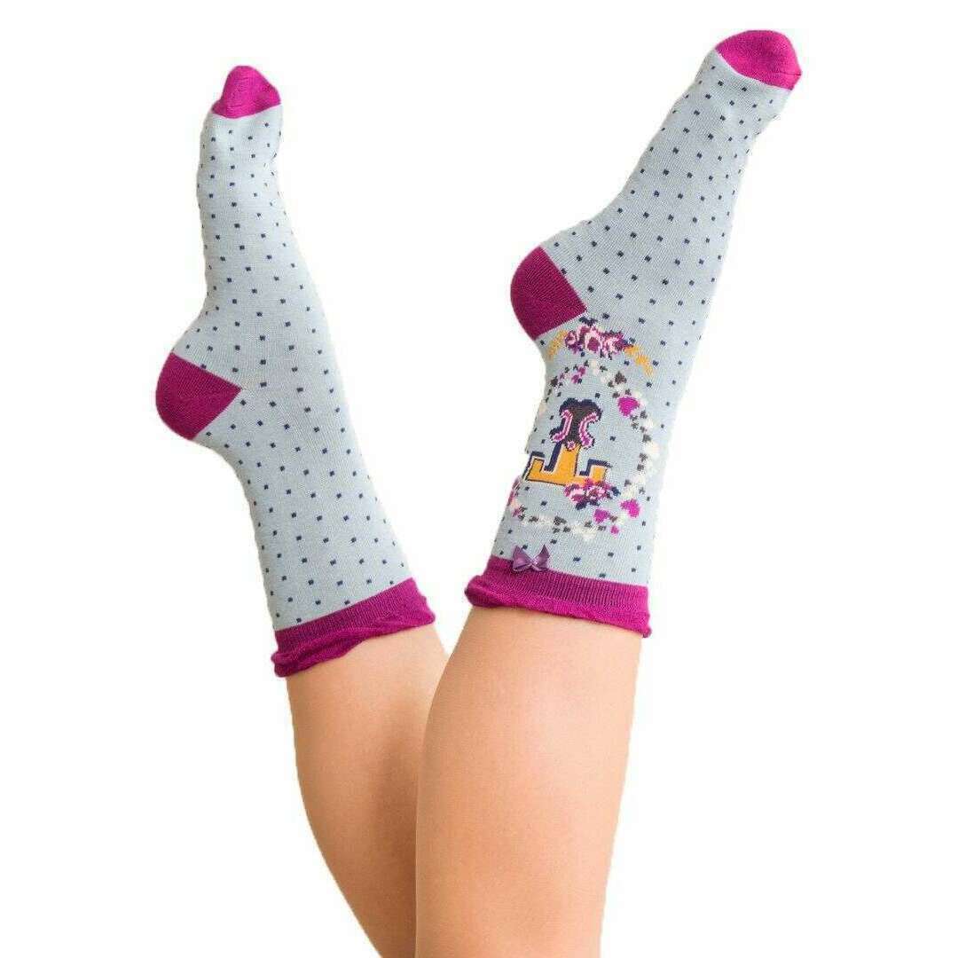 Introducing these women's letter t ankle socks by Powder, they are manufactured from 65% bamboo, 15% cotton, 10% nylon and 10% elastane in a ice blue colour. Also the ice blue socks are designed in a spots pattern, It is recommended to machine wash at 30 degrees to keep these socks in good condition. All the socks come complete with powder tags. The Powder Letter T Ankle Socks - Ice Blue are the perfect socks for a personalised gift! Made using bamboo these socks will keep your feet stylish and warm. Available with every letter of the alphabet these socks have a fun, playful design that you are sure to love!