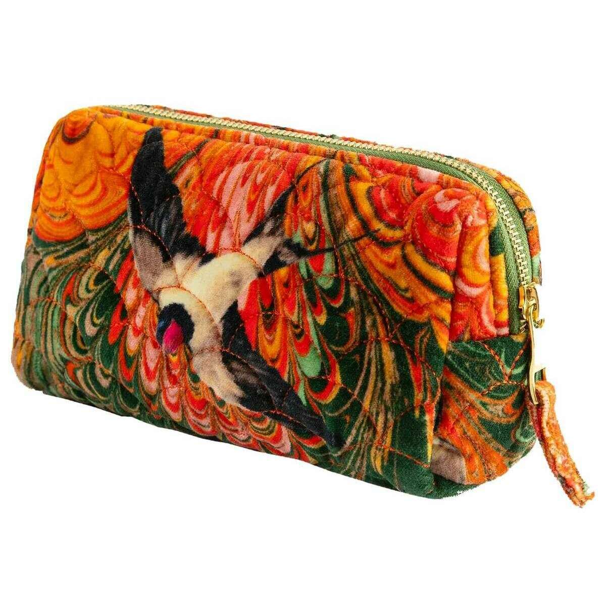 Brought to you by the brand Powder, this orange women's marbled swallow quilted vanity bag is made from 100% cotton velvet. It measures 13cm(height) x 21.5cm(width) x 7cm(depth). All the bags come complete with powder tags. The Powder Marbled Swallow Quilted Vanity Bag - Orange combines practicality and style, giving you an accessory that will keep you organised and looking good doing it. Unzip it to find a great sized interior that will carry your essentials for whatever it is you need on a day-to-day basis when running errands. Perfect for travelling with or just to store your items at home. Finished with an intricate design and gorgeous detailed scalloped quilting completes this piece.